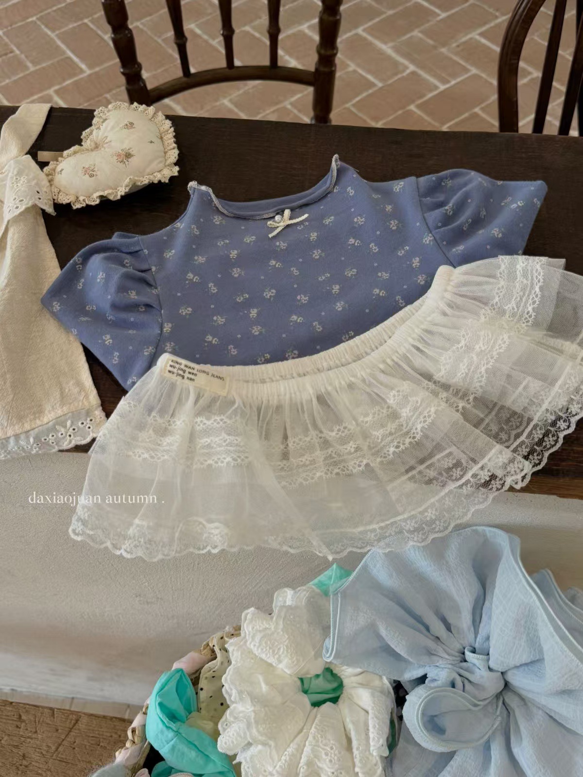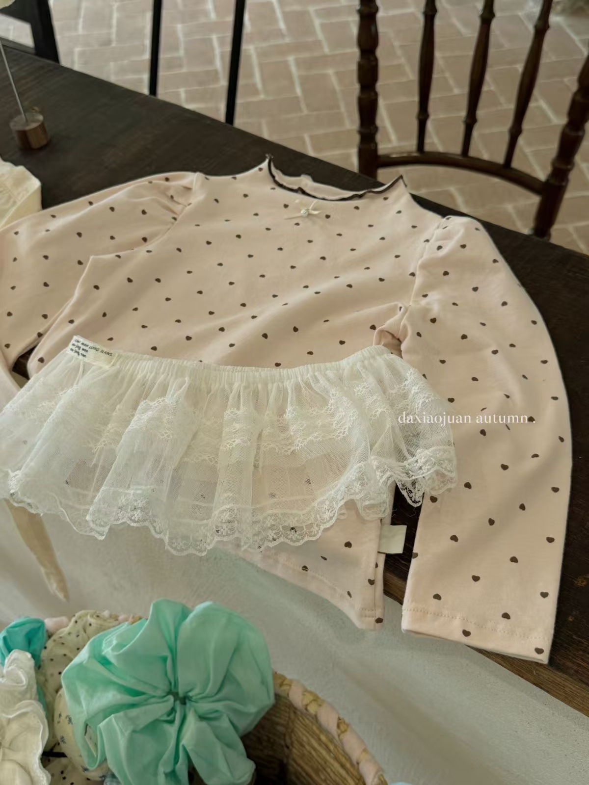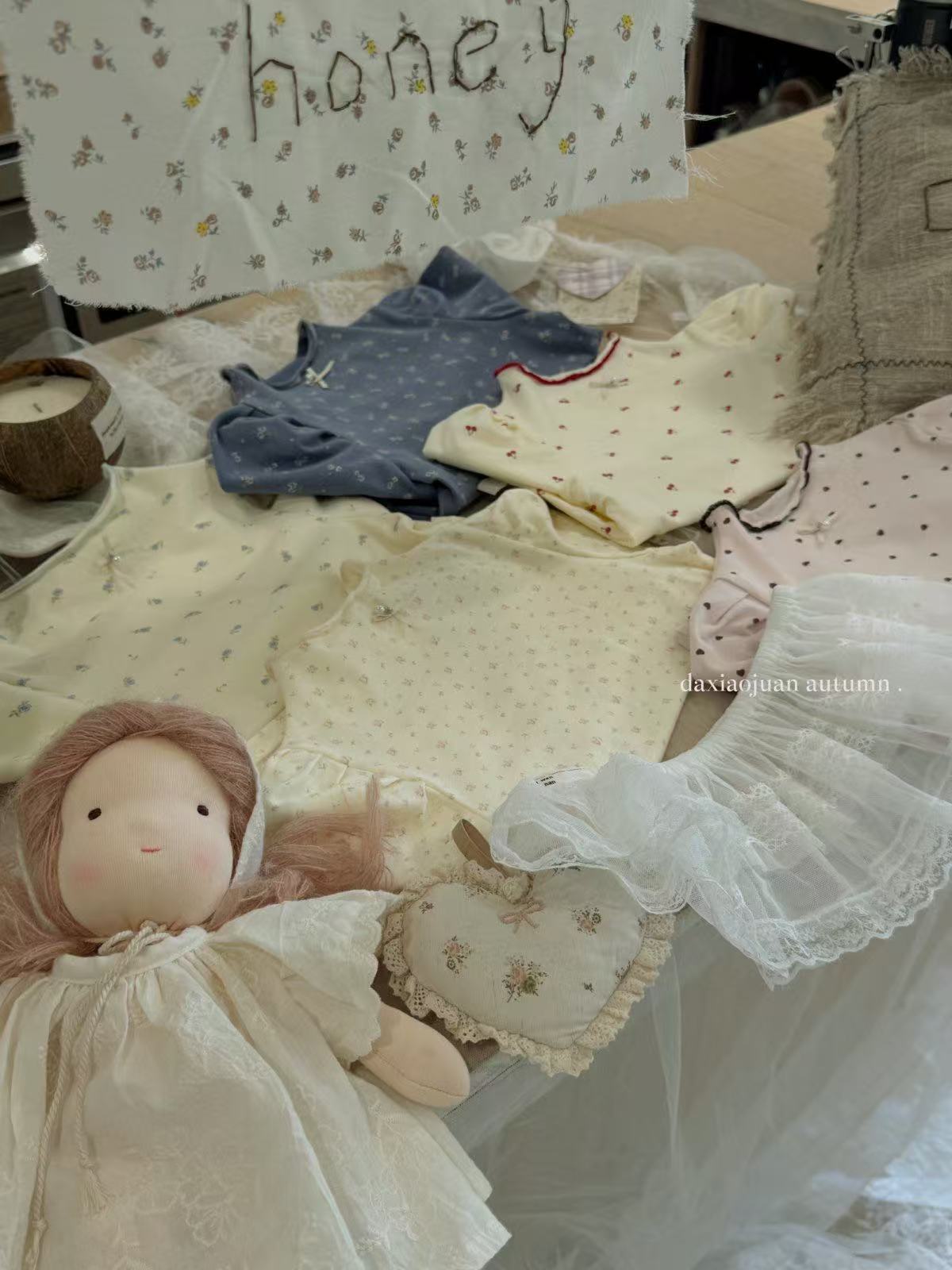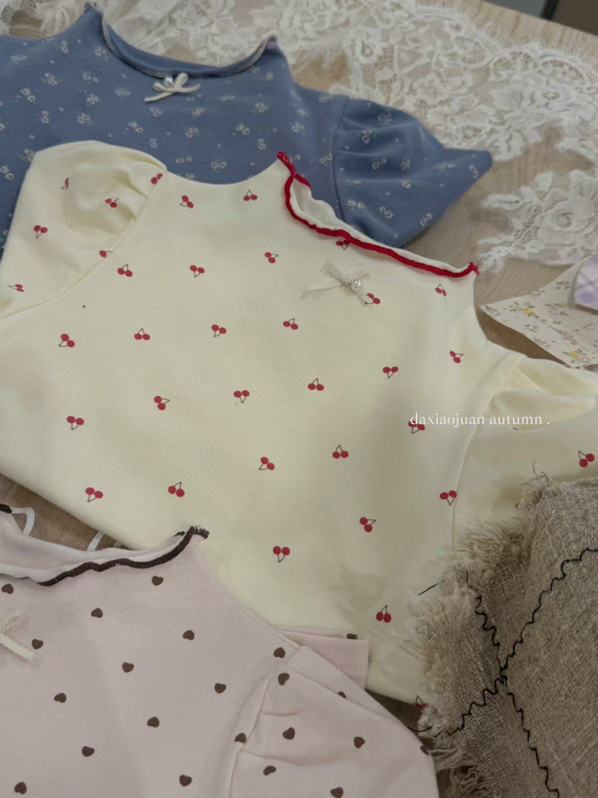 크고 작은 사이즈 아동복 25 가을 여아 하의 셔츠 여아 꽃무늬 달콤한 레이스 칼라 귀달이 달콤한 긴팔 티셔츠
