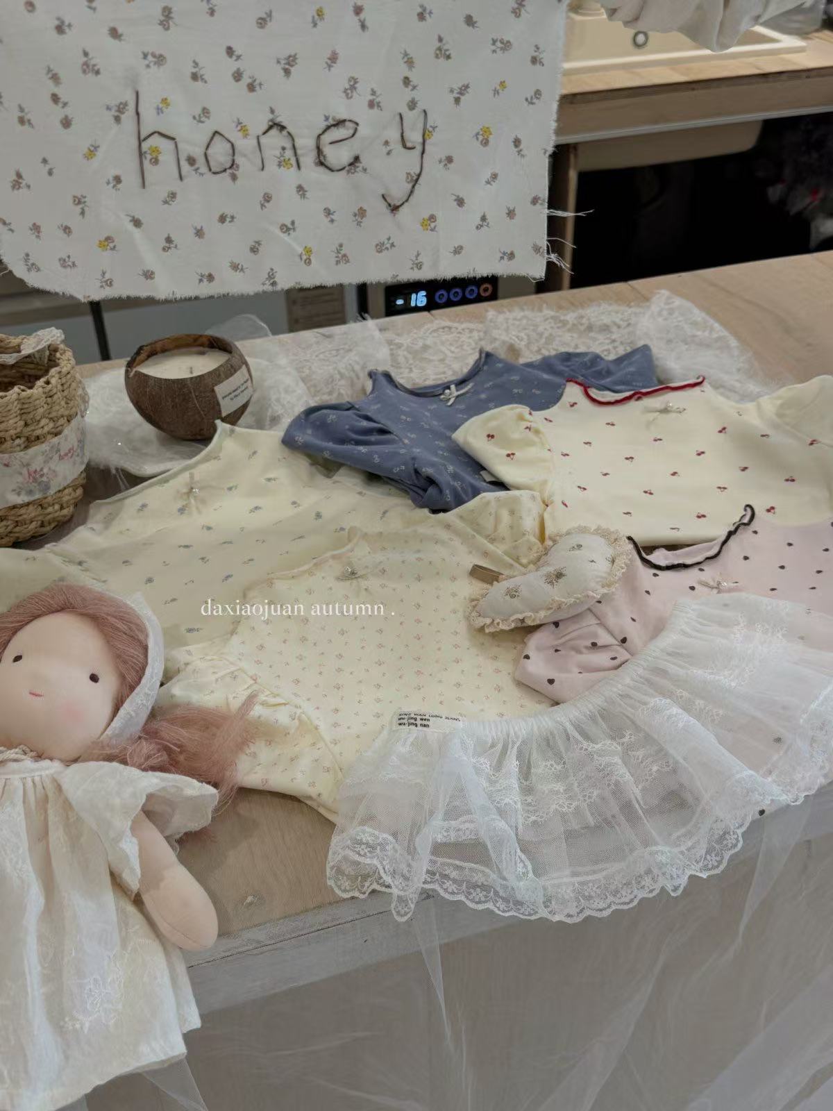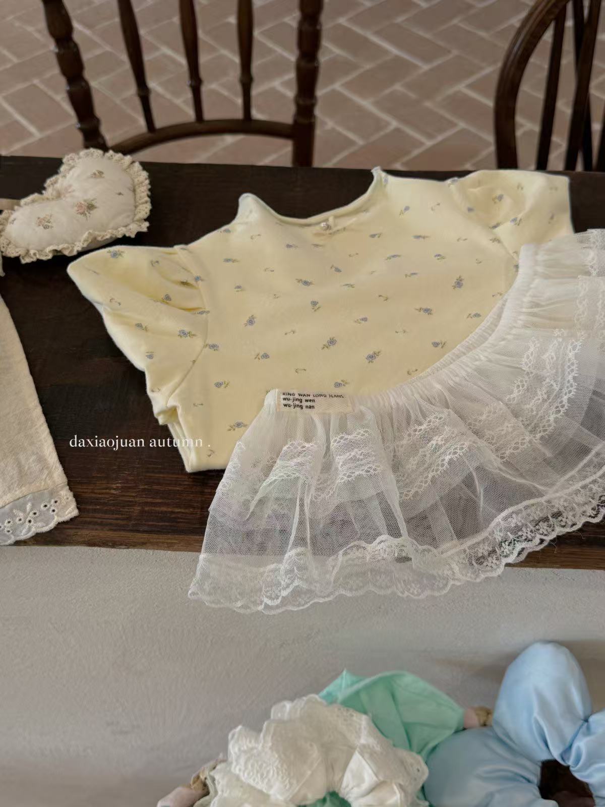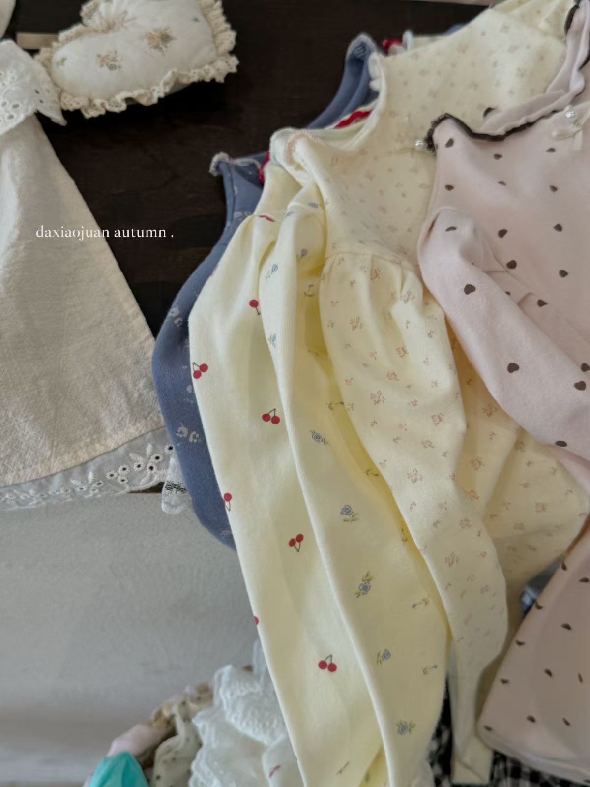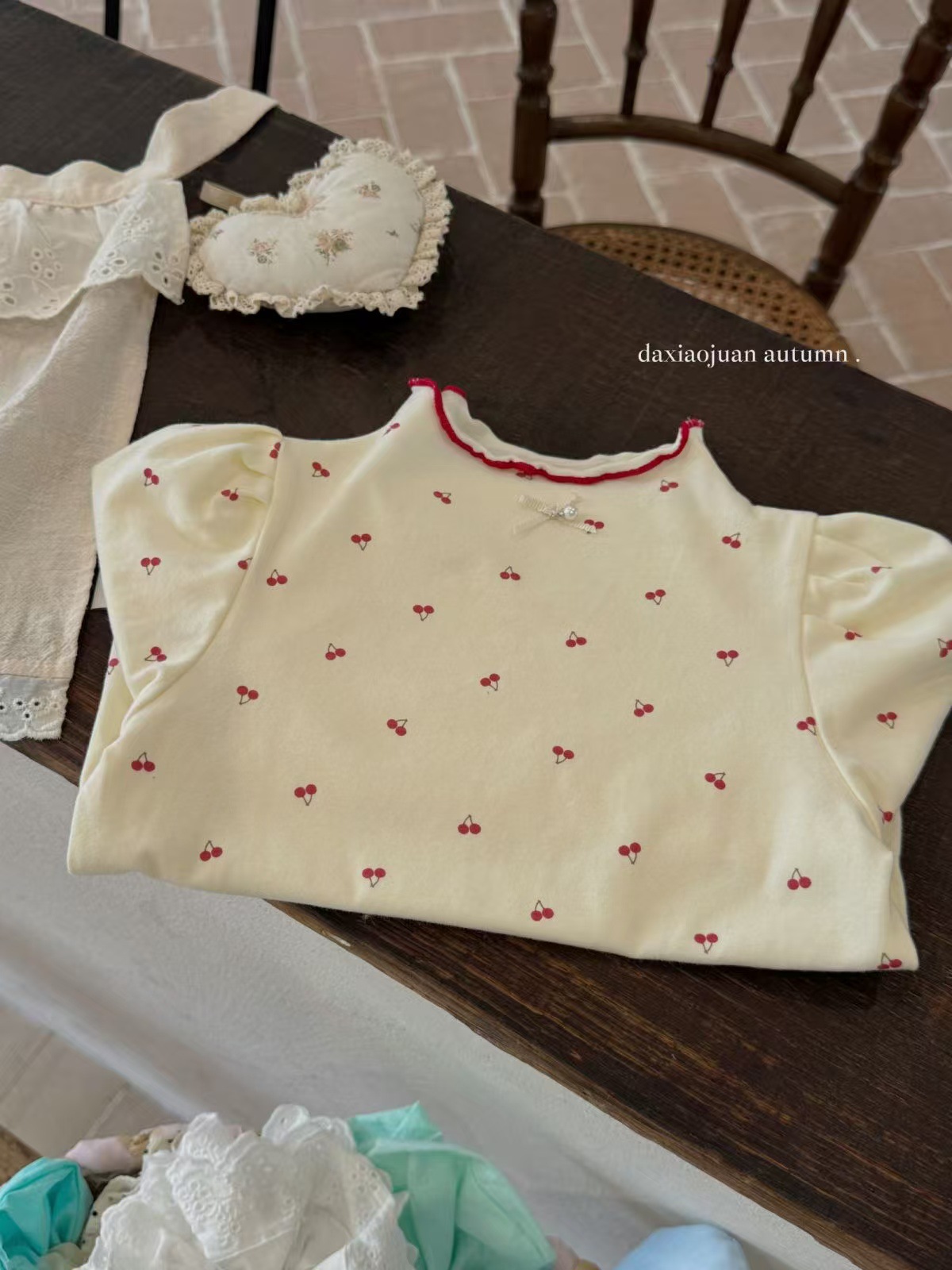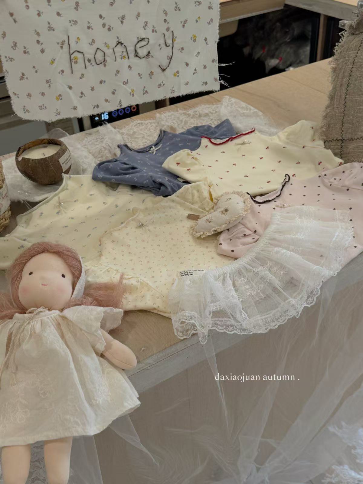 크고 작은 사이즈 아동복 25 가을 여아 하의 셔츠 여아 꽃무늬 달콤한 레이스 칼라 귀달이 달콤한 긴팔 티셔츠