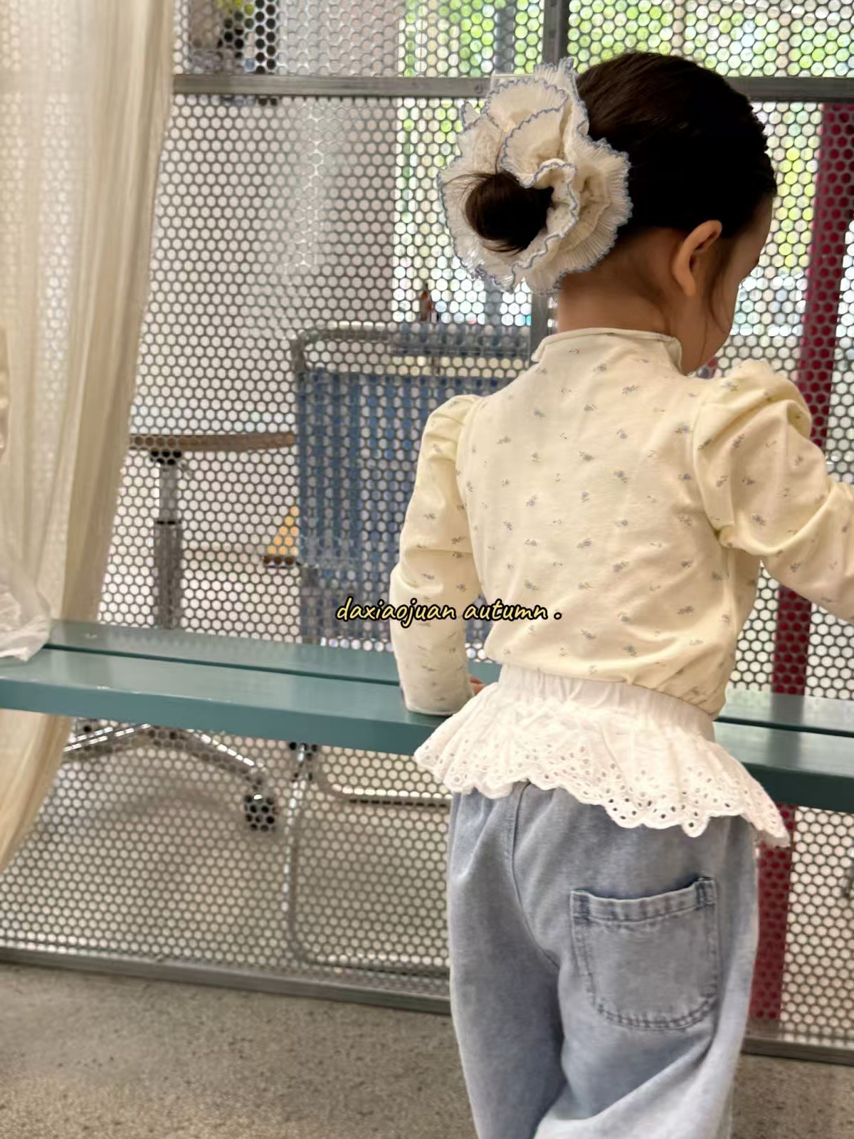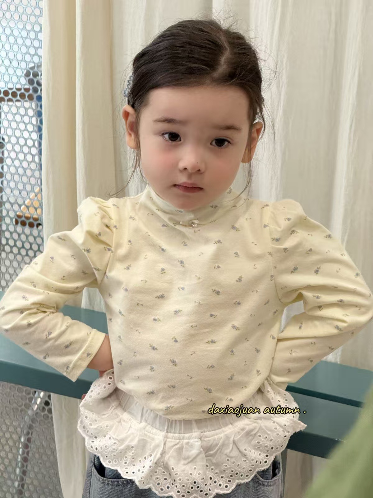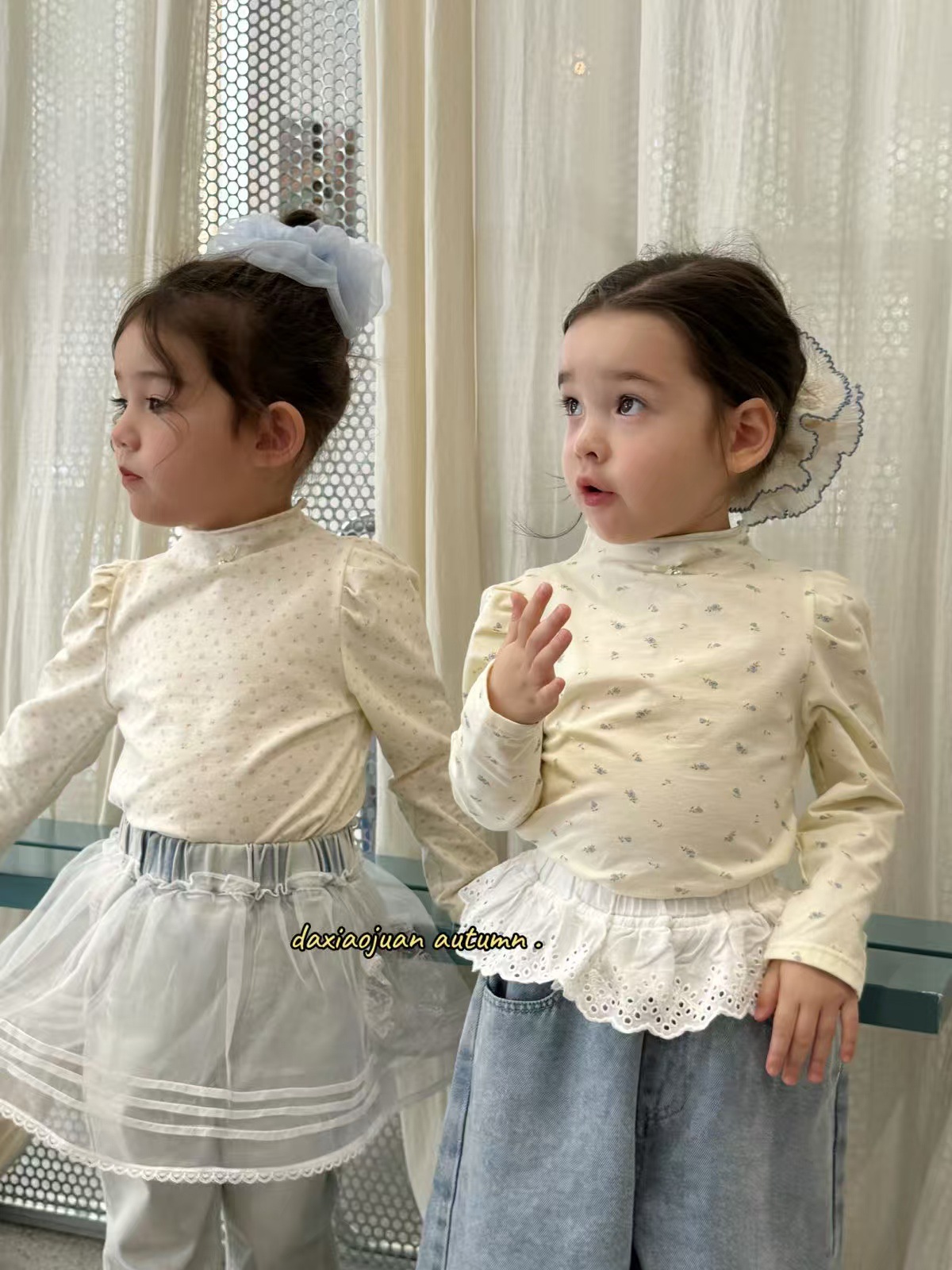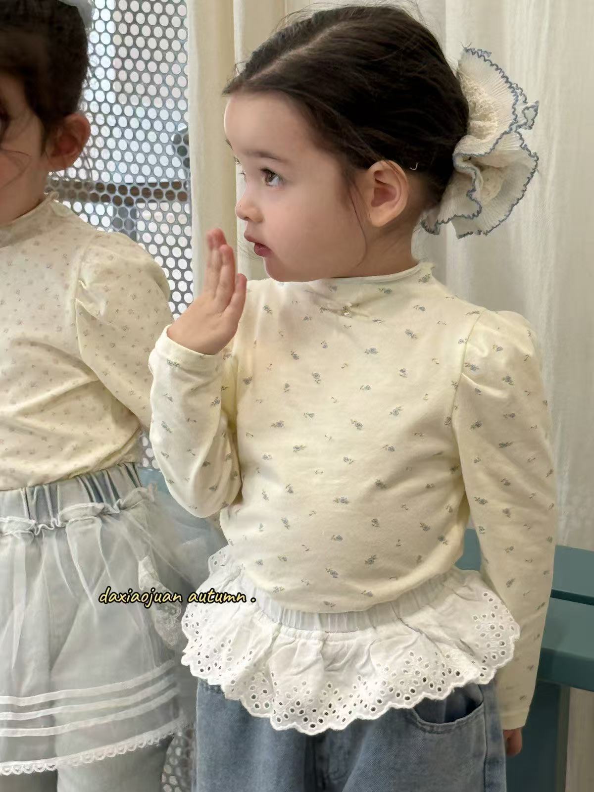 크고 작은 사이즈 아동복 25 가을 여아 하의 셔츠 여아 꽃무늬 달콤한 레이스 칼라 귀달이 달콤한 긴팔 티셔츠스토어 가기