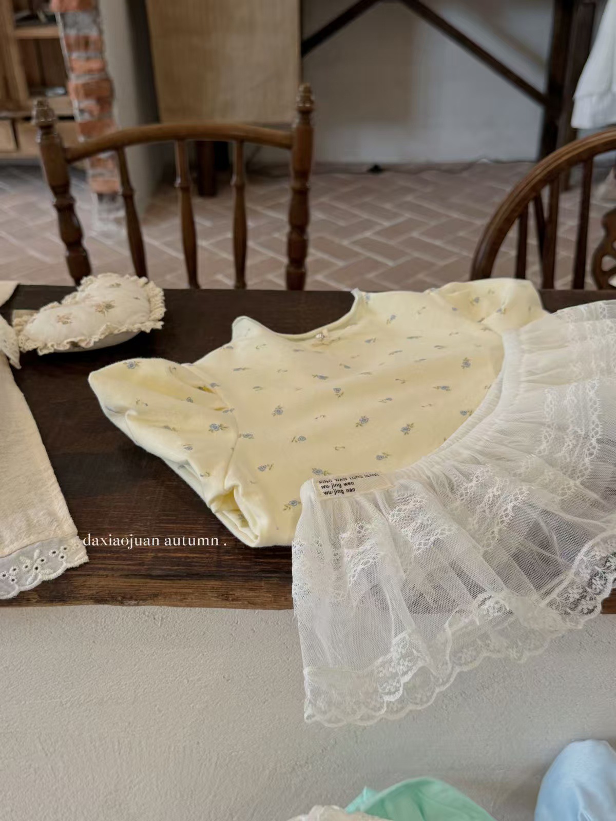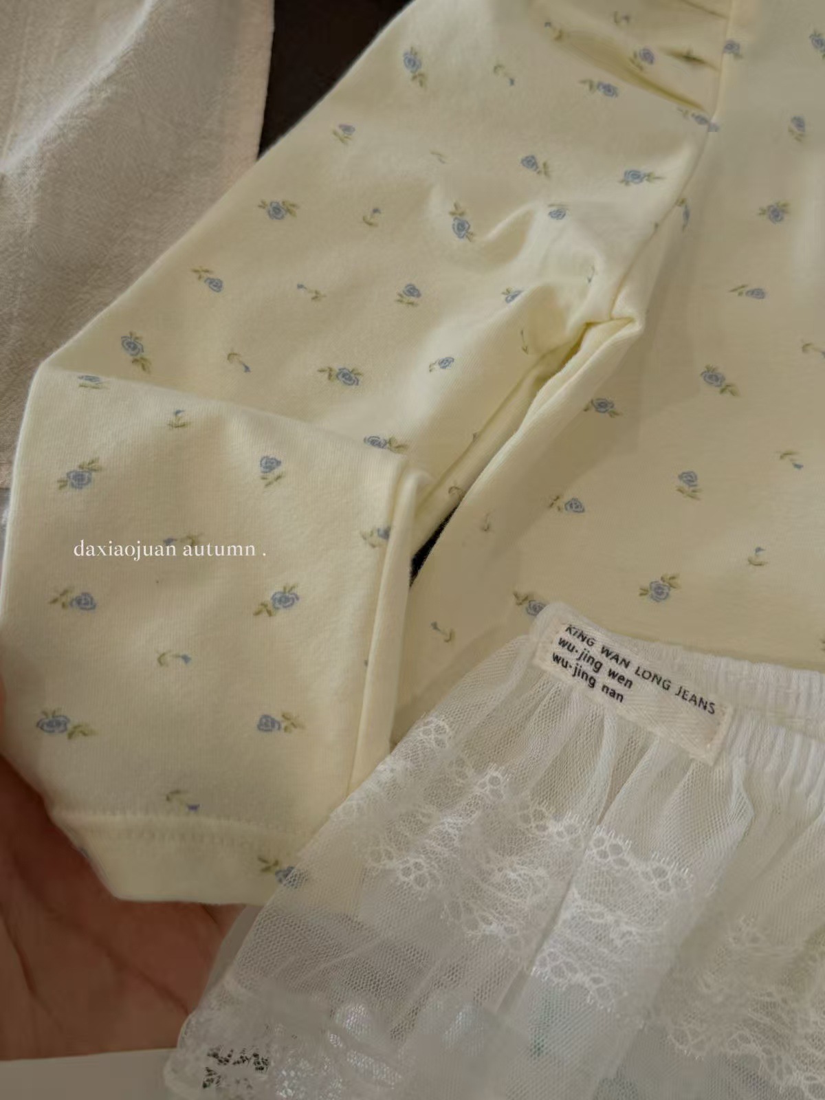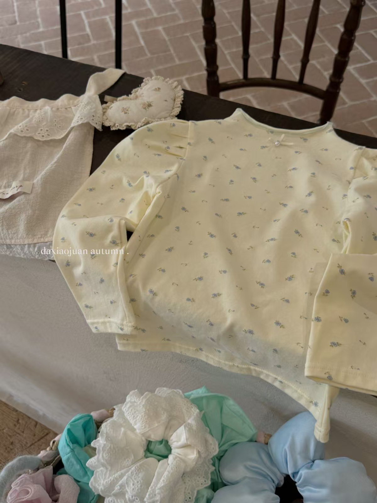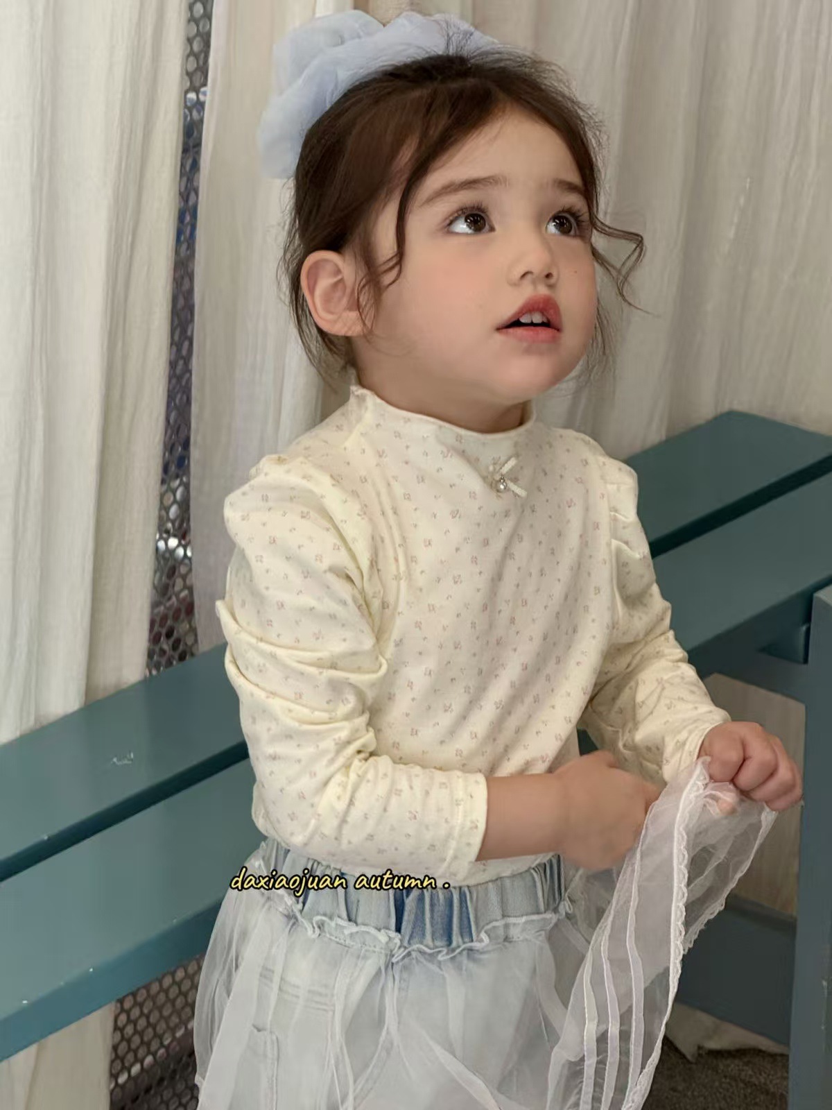 크고 작은 사이즈 아동복 25 가을 여아 하의 셔츠 여아 꽃무늬 달콤한 레이스 칼라 귀달이 달콤한 긴팔 티셔츠스토어 가기