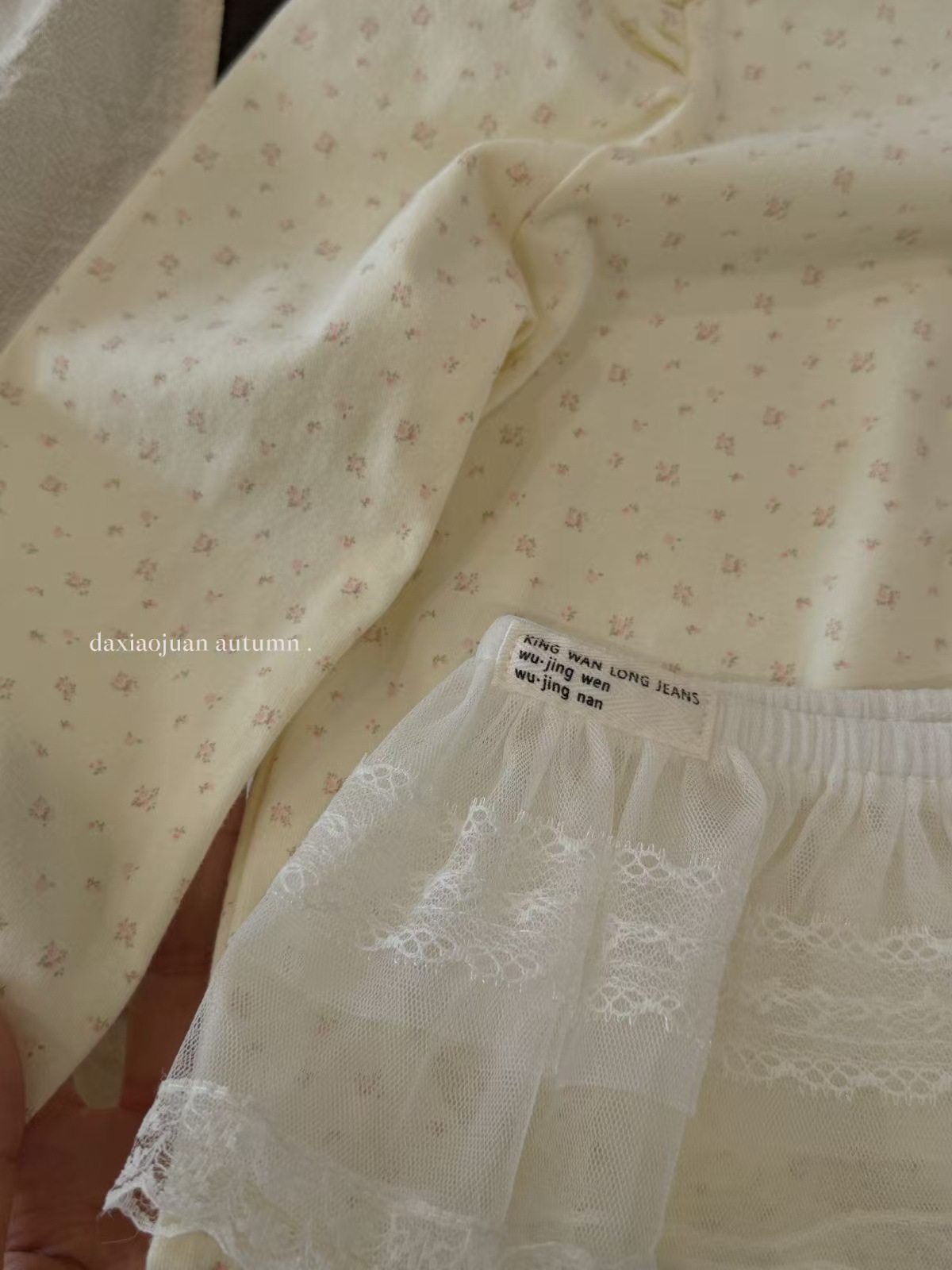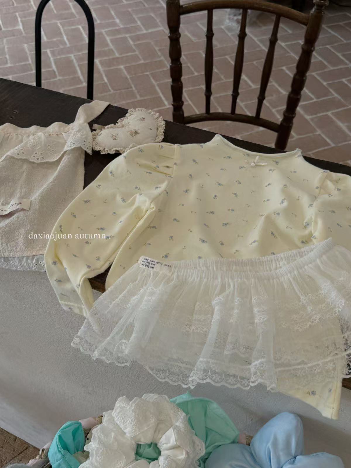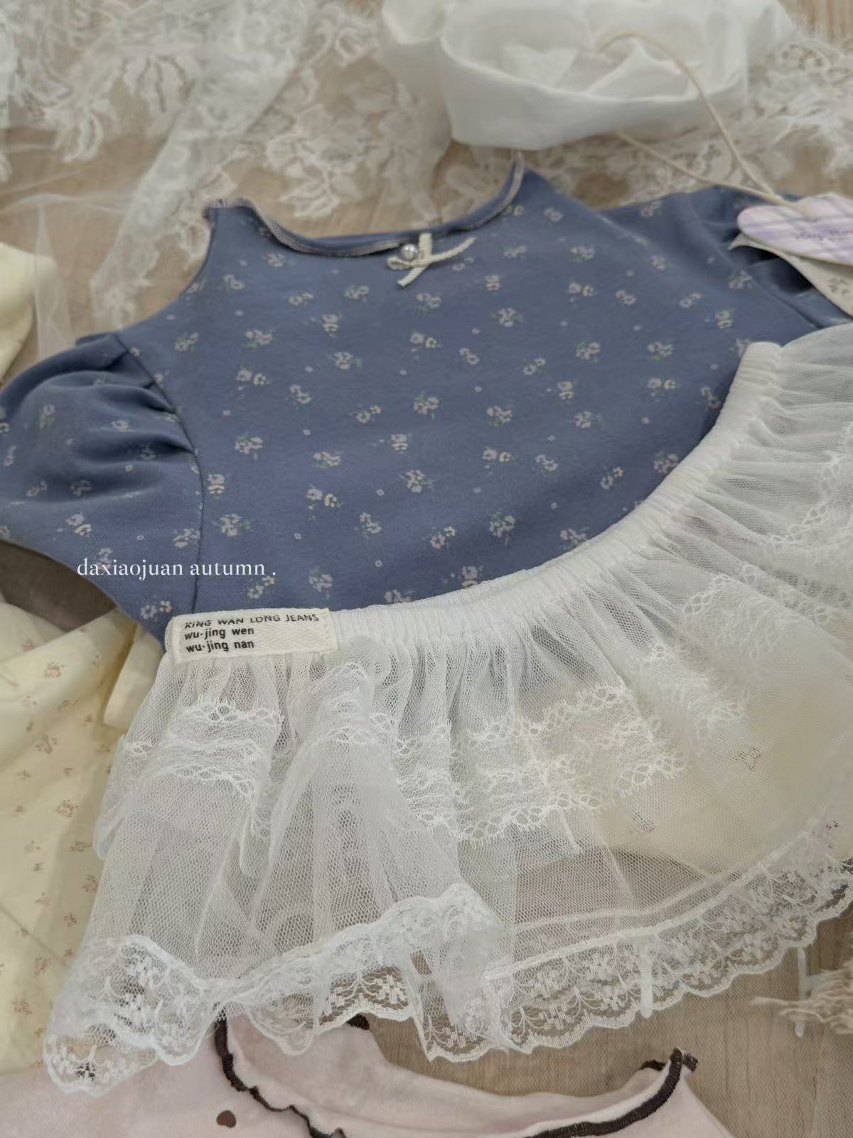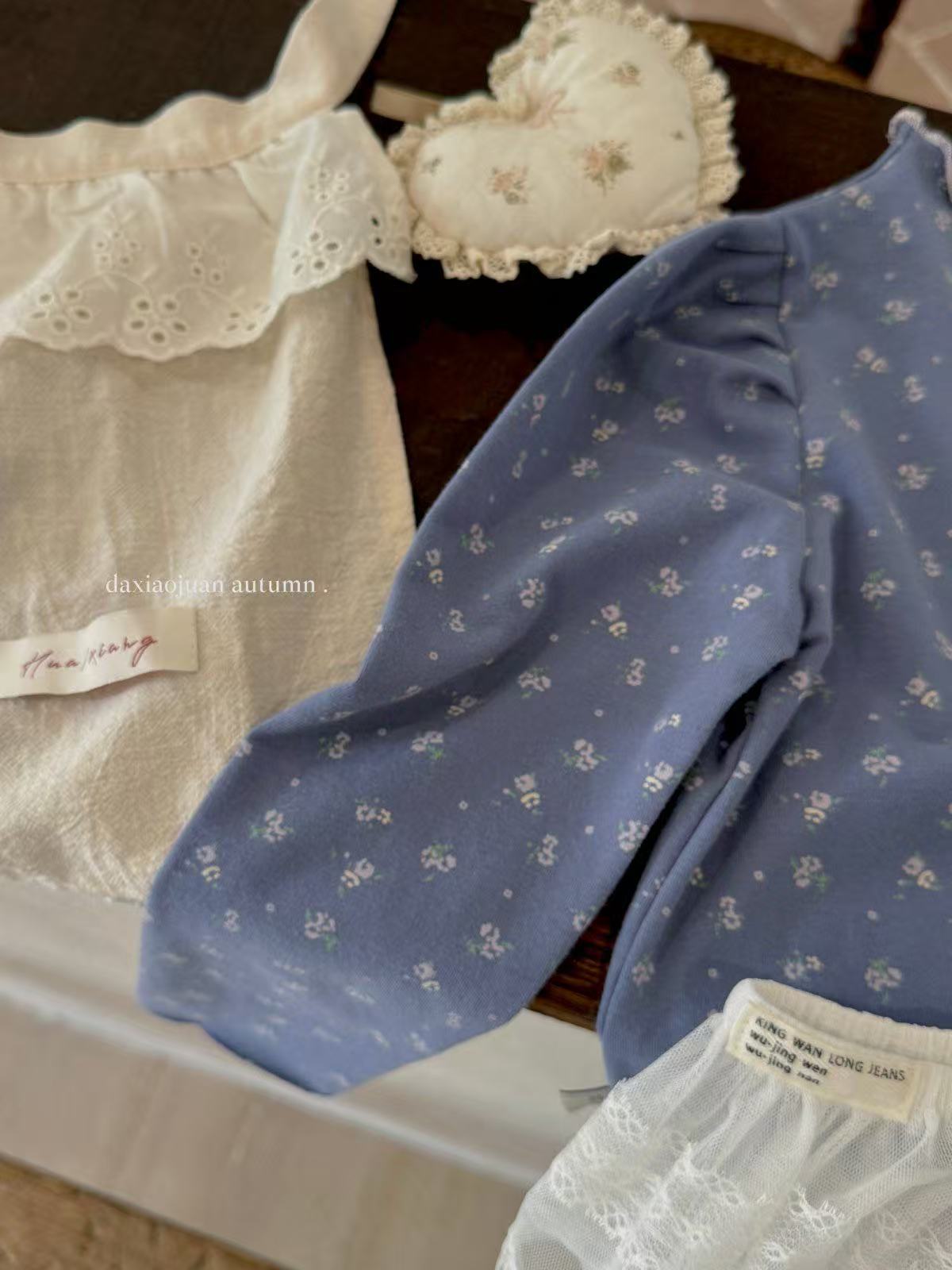크고 작은 사이즈 아동복 25 가을 여아 하의 셔츠 여아 꽃무늬 달콤한 레이스 칼라 귀달이 달콤한 긴팔 티셔츠스토어 가기