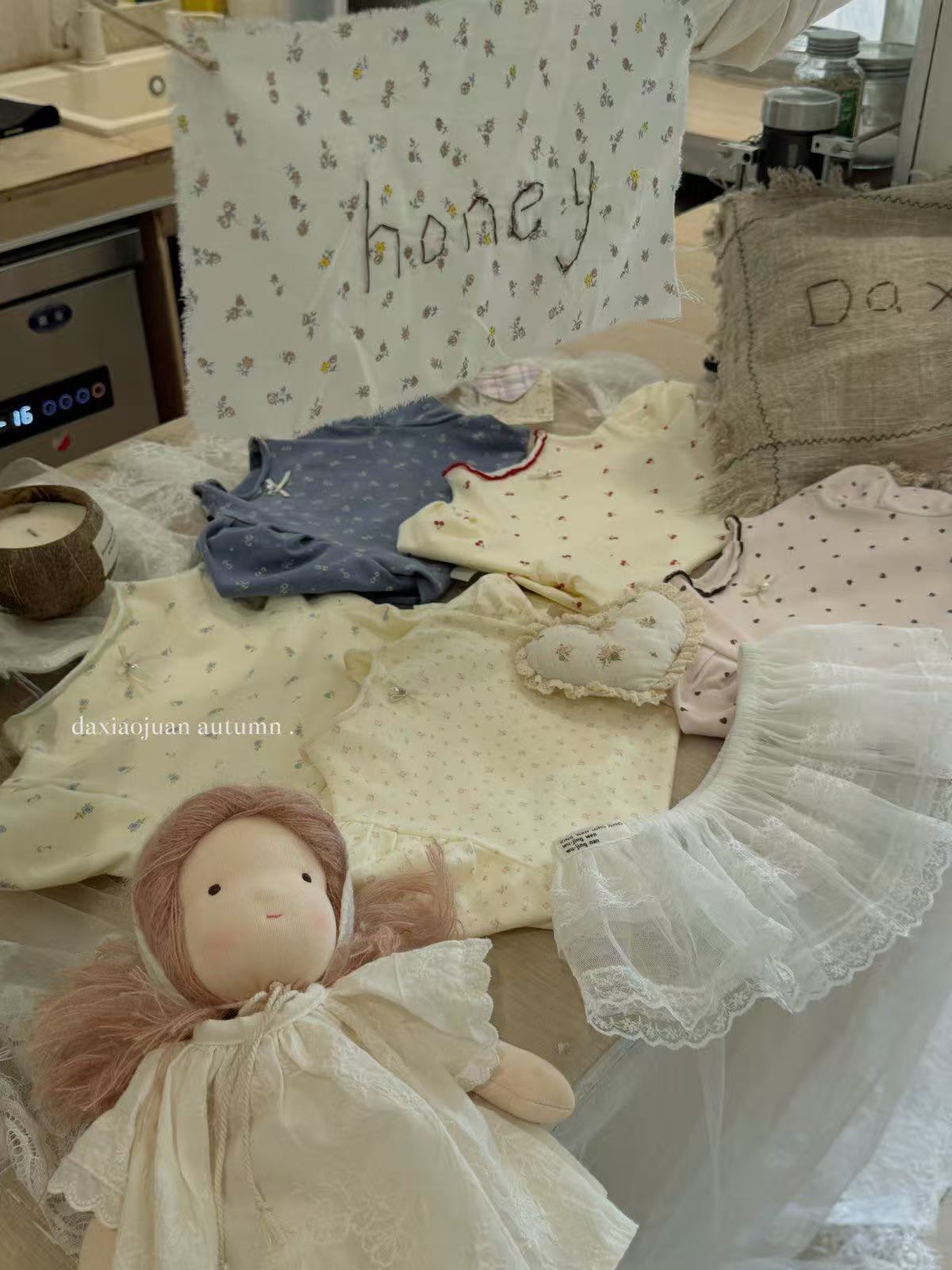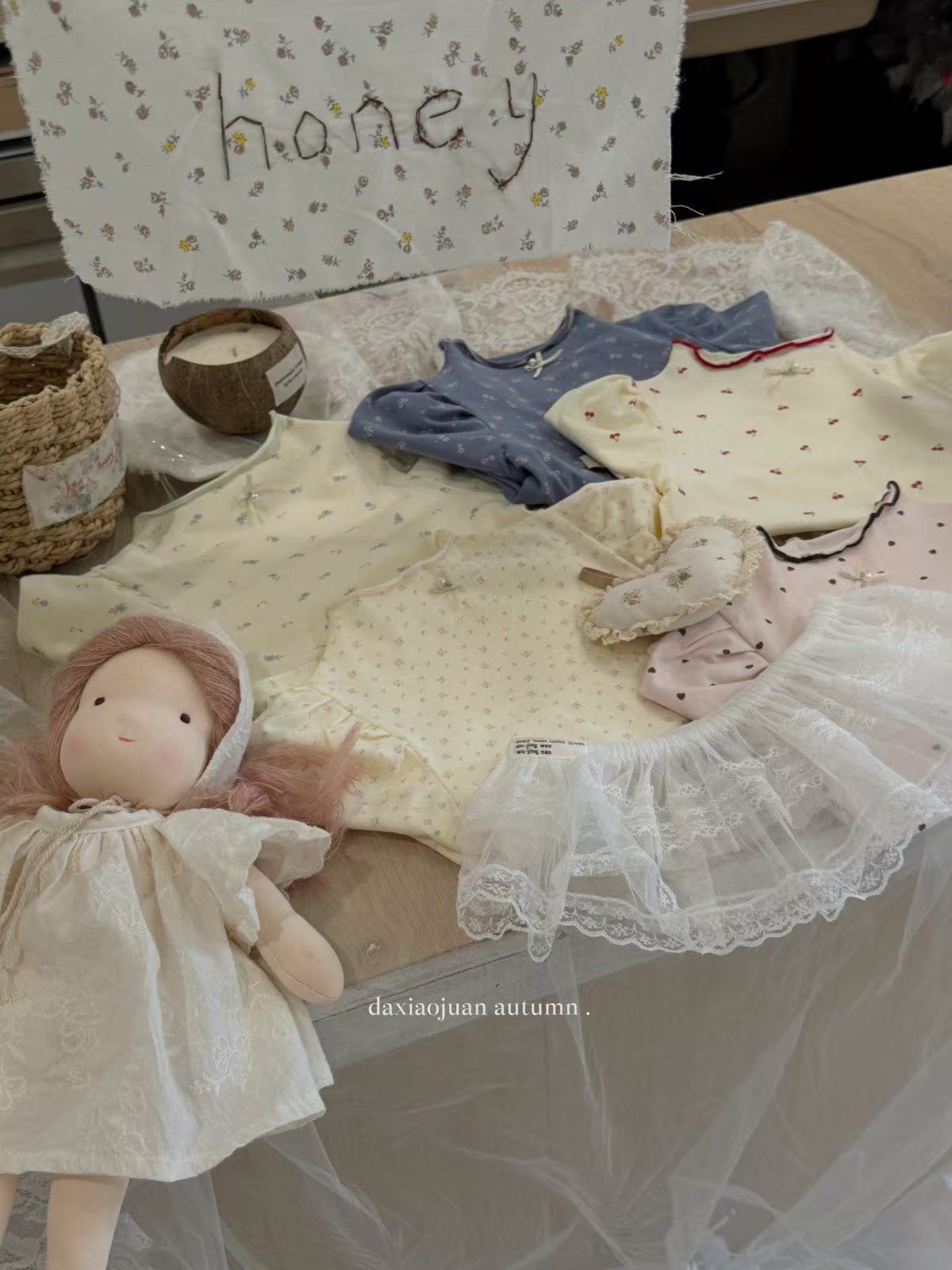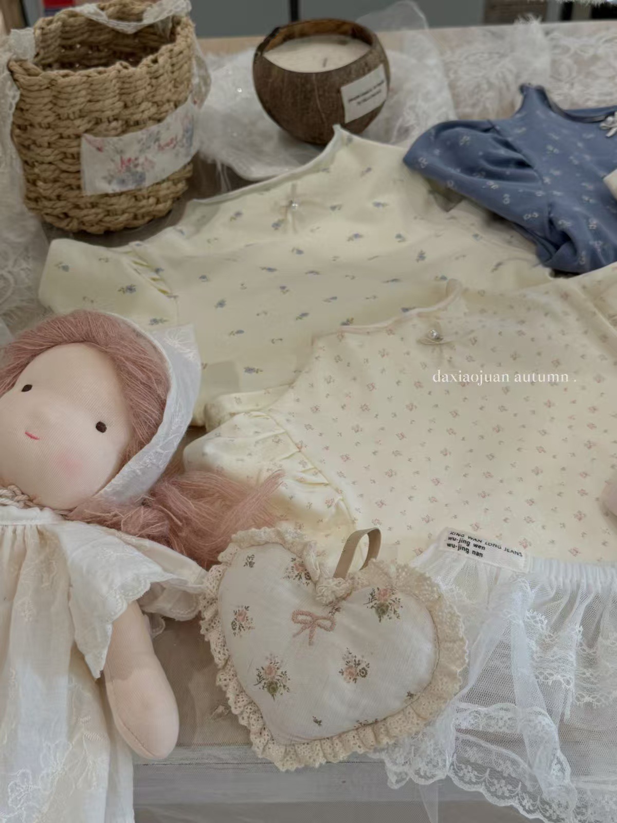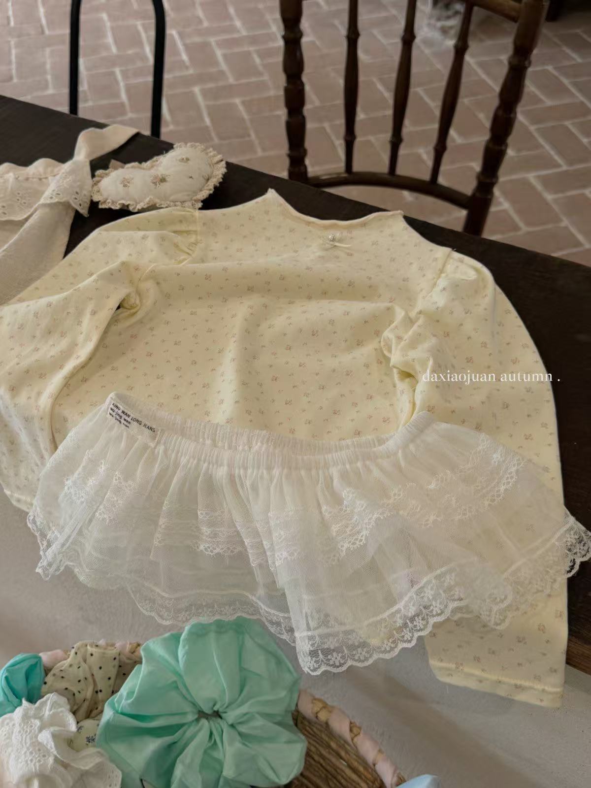 크고 작은 사이즈 아동복 25 가을 여아 하의 셔츠 여아 꽃무늬 달콤한 레이스 칼라 귀달이 달콤한 긴팔 티셔츠스토어 가기