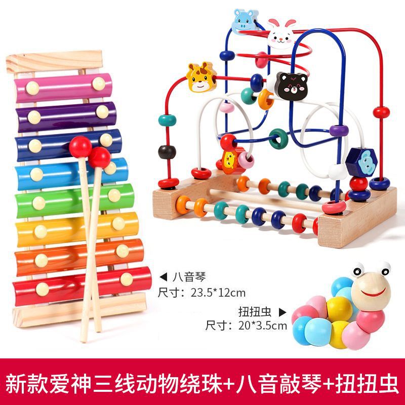 3 라인 구슬 구슬 빌딩 블록 소년을위한 다기능 지능형 장난감 아기 소녀 아기 동물 몬테소리 조기 교육스토어 가기