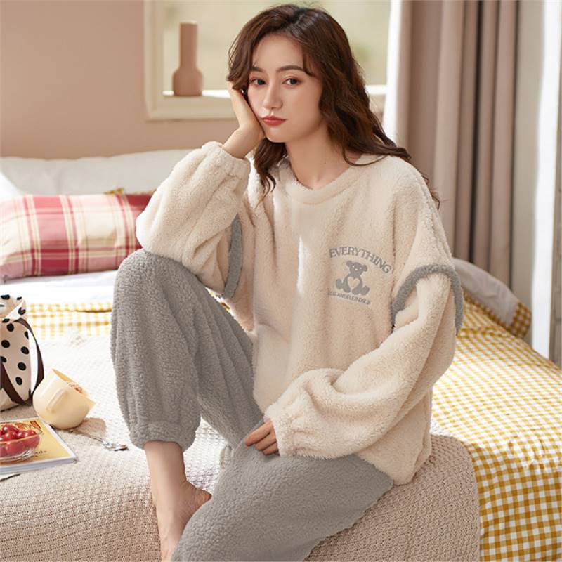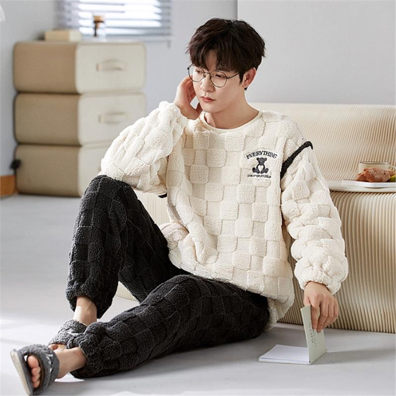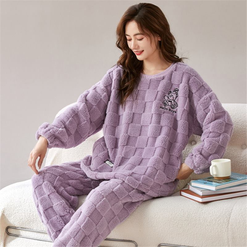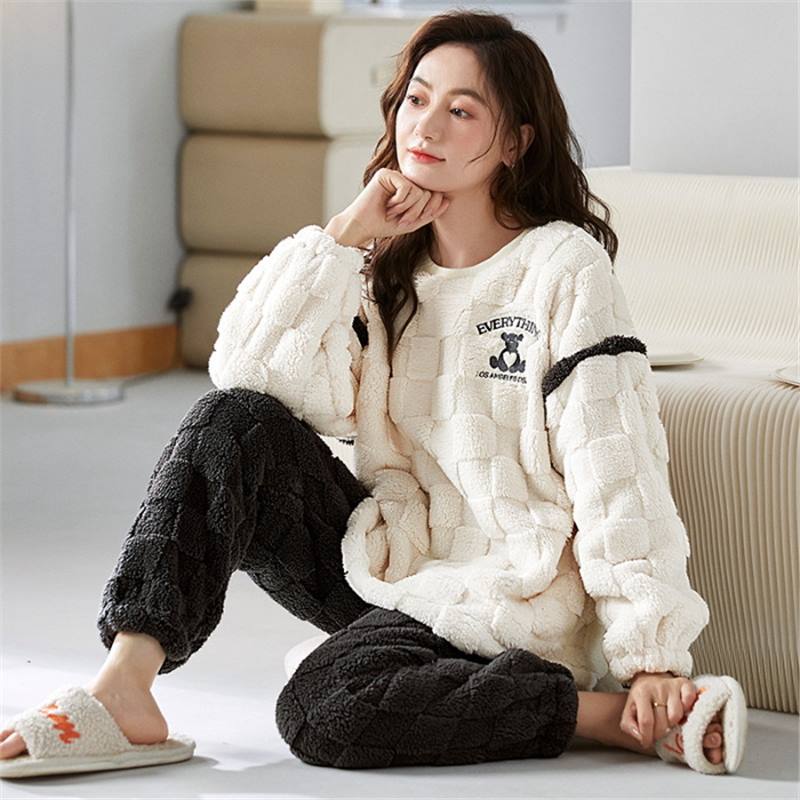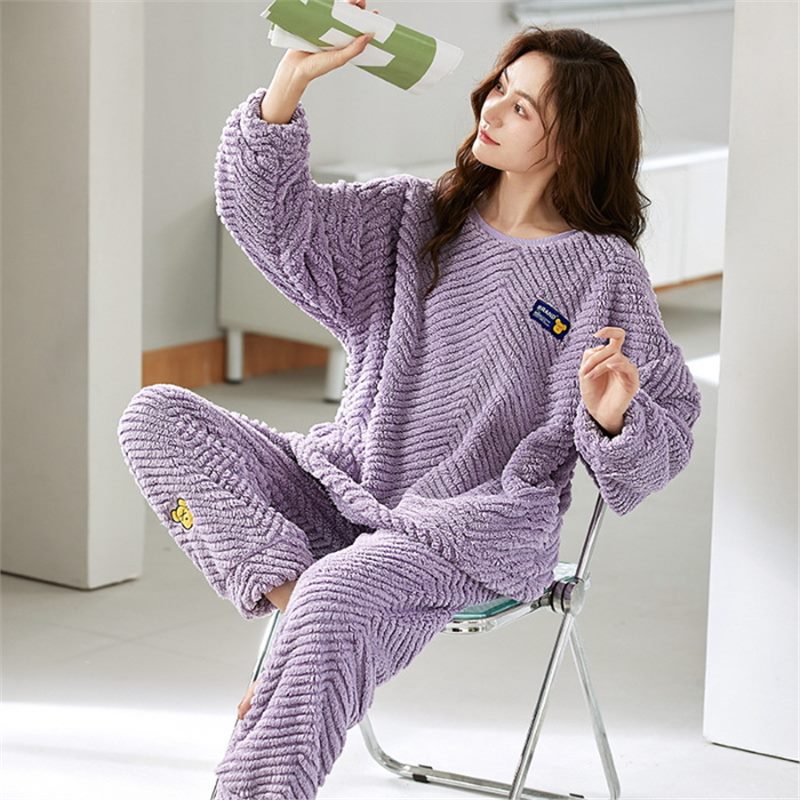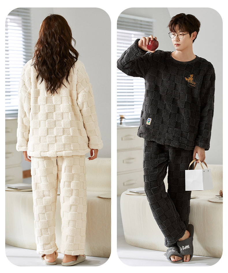 여성을위한 플러시 자카드 커플 잠옷 겨울 긴팔 풀오버 두꺼운 따뜻한 산호 벨벳 남성 홈웨어 세트스토어 가기