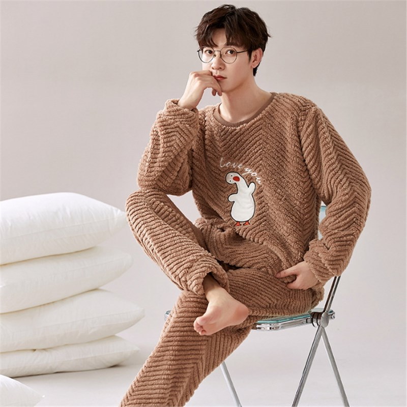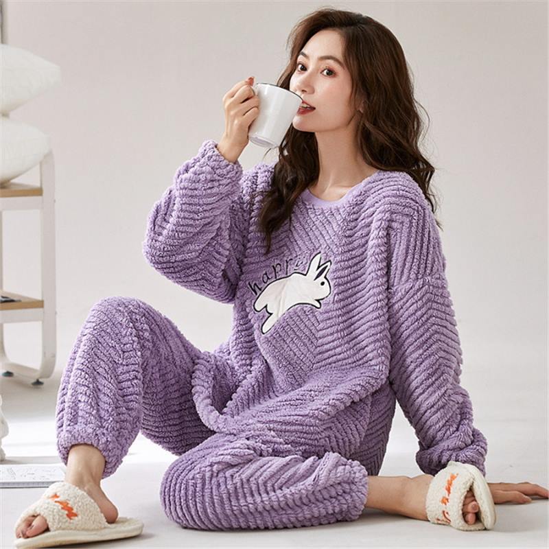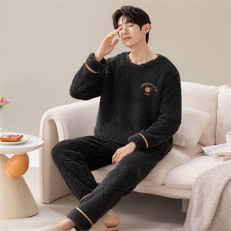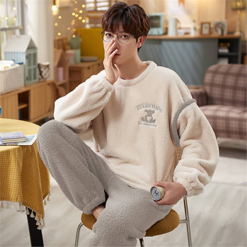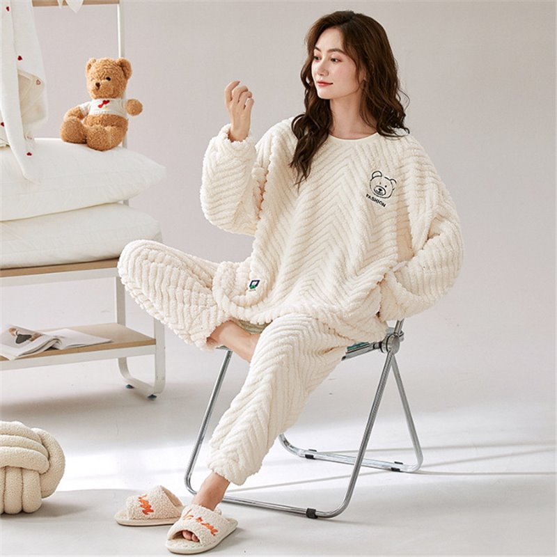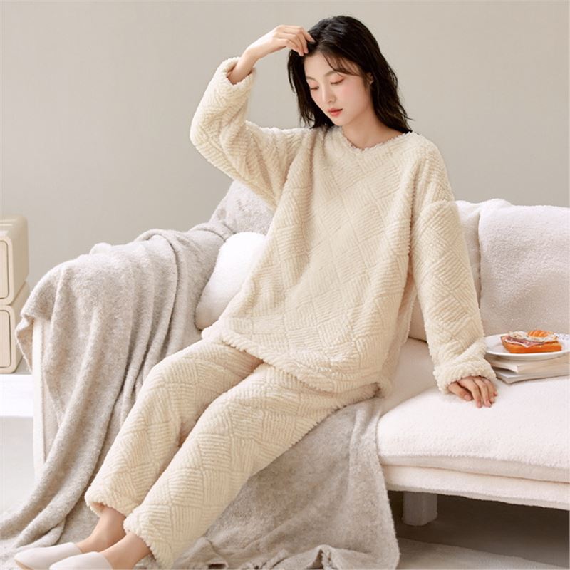 여성을위한 플러시 자카드 커플 잠옷 겨울 긴팔 풀오버 두꺼운 따뜻한 산호 벨벳 남성 홈웨어 세트스토어 가기
