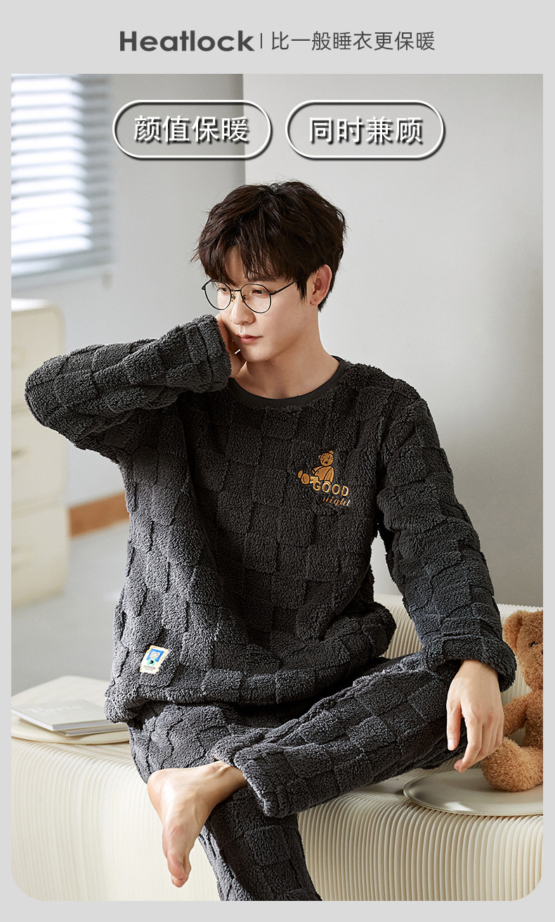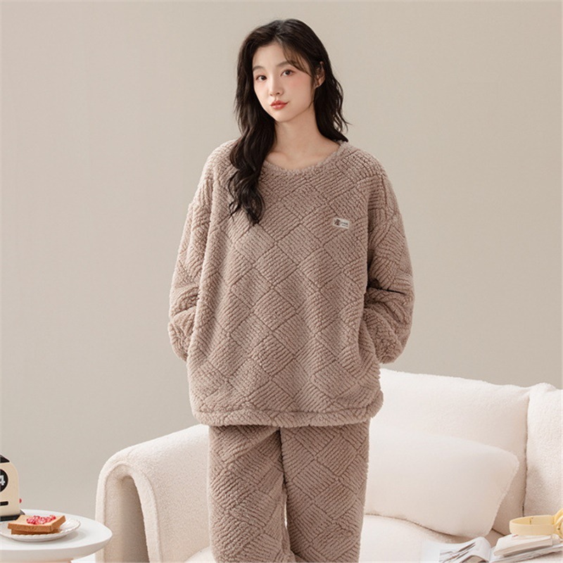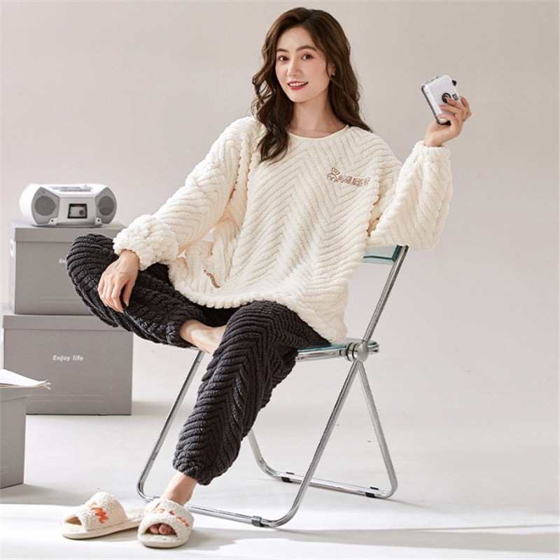 여성을위한 플러시 자카드 커플 잠옷 겨울 긴팔 풀오버 두꺼운 따뜻한 산호 벨벳 남성 홈웨어 세트