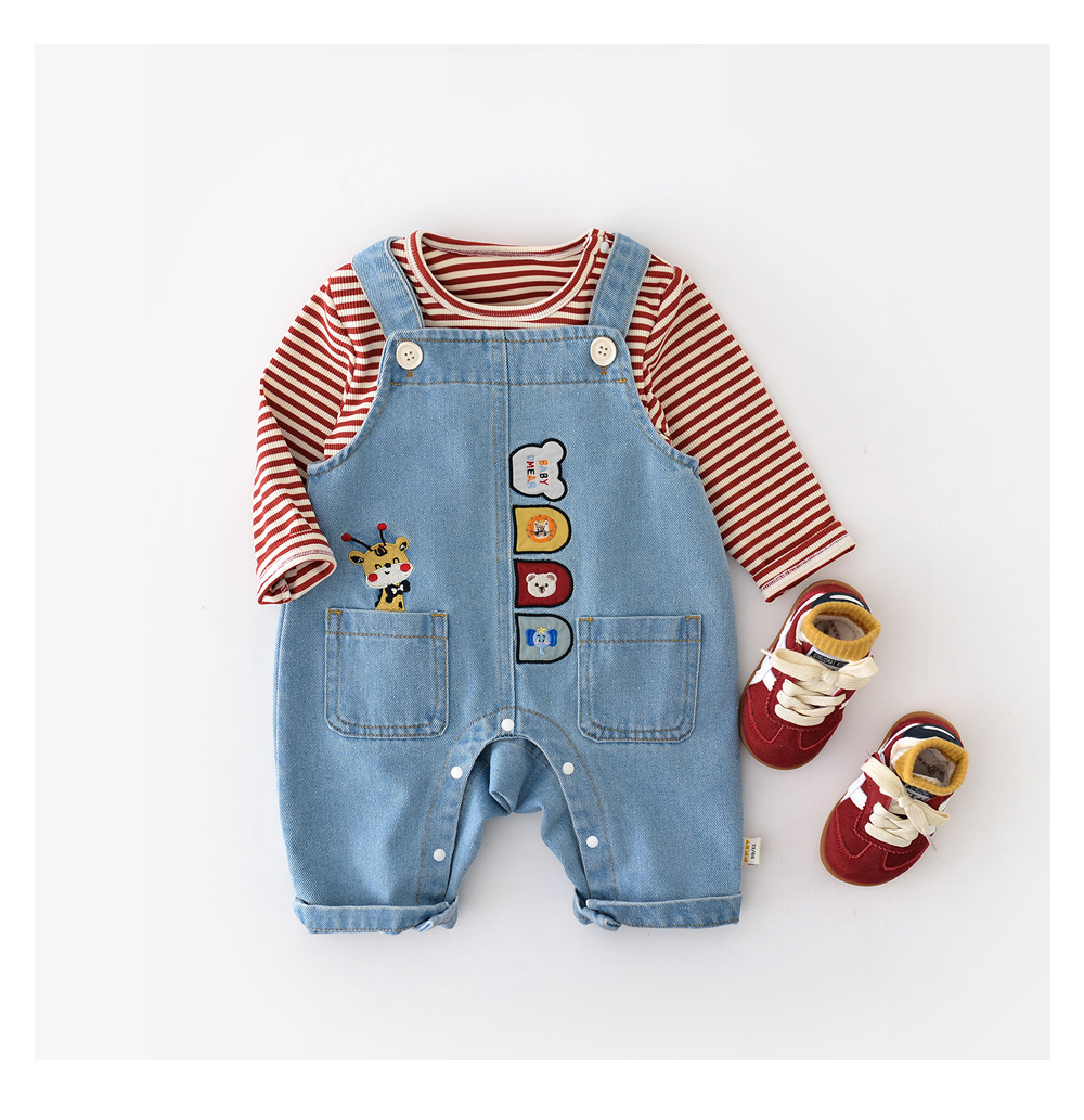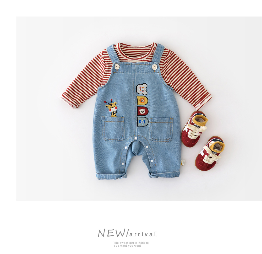 2025 한국어 버전 어린이 가을 샌드 워시 청바지 소년 아기 만화 패치 수 놓은 작업복 53727스토어 가기