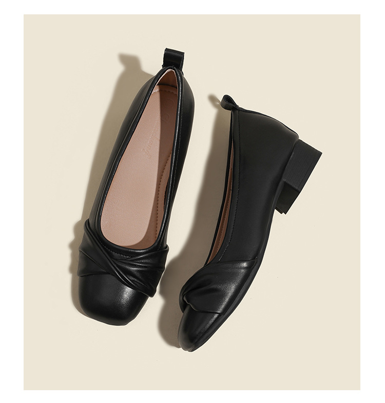키가 작은 사람들을 위한 6cm 화이트 메리 제인 여성용 부드러운 가죽 프렌치 레트로 스퀘어 토 두꺼운 굽 하이힐