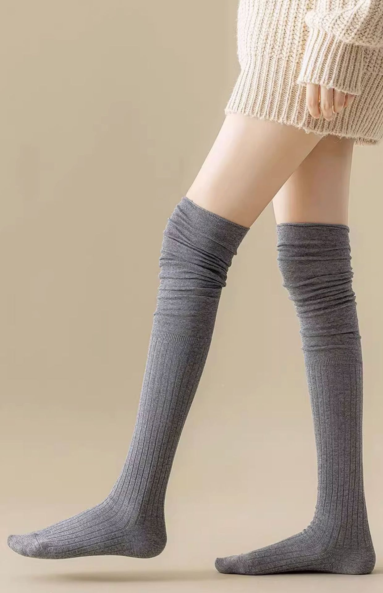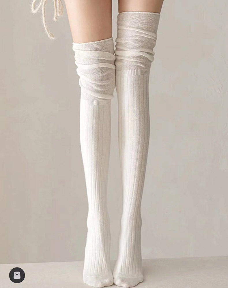 여성용 양말 봄, 가을 순면 무릎 위 스타킹 하이 허벅지 미끄럼 방지 슬리밍 화이트 스택 부츠 양말 가을, 겨울