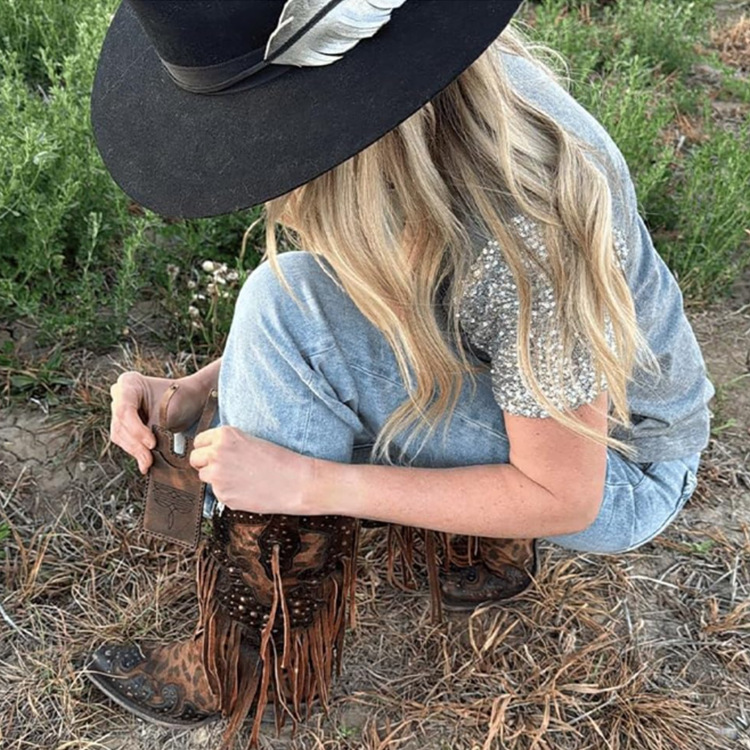 스냅 스트랩이 달린 웨스턴 부츠 지갑 중세 복고풍 지갑