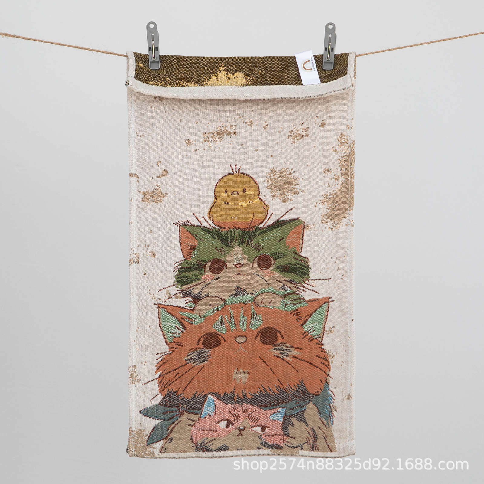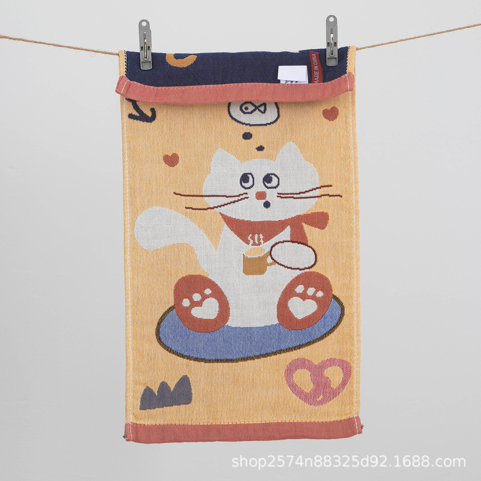 • 워시드 코튼-옐로우 캣-스몰 타월