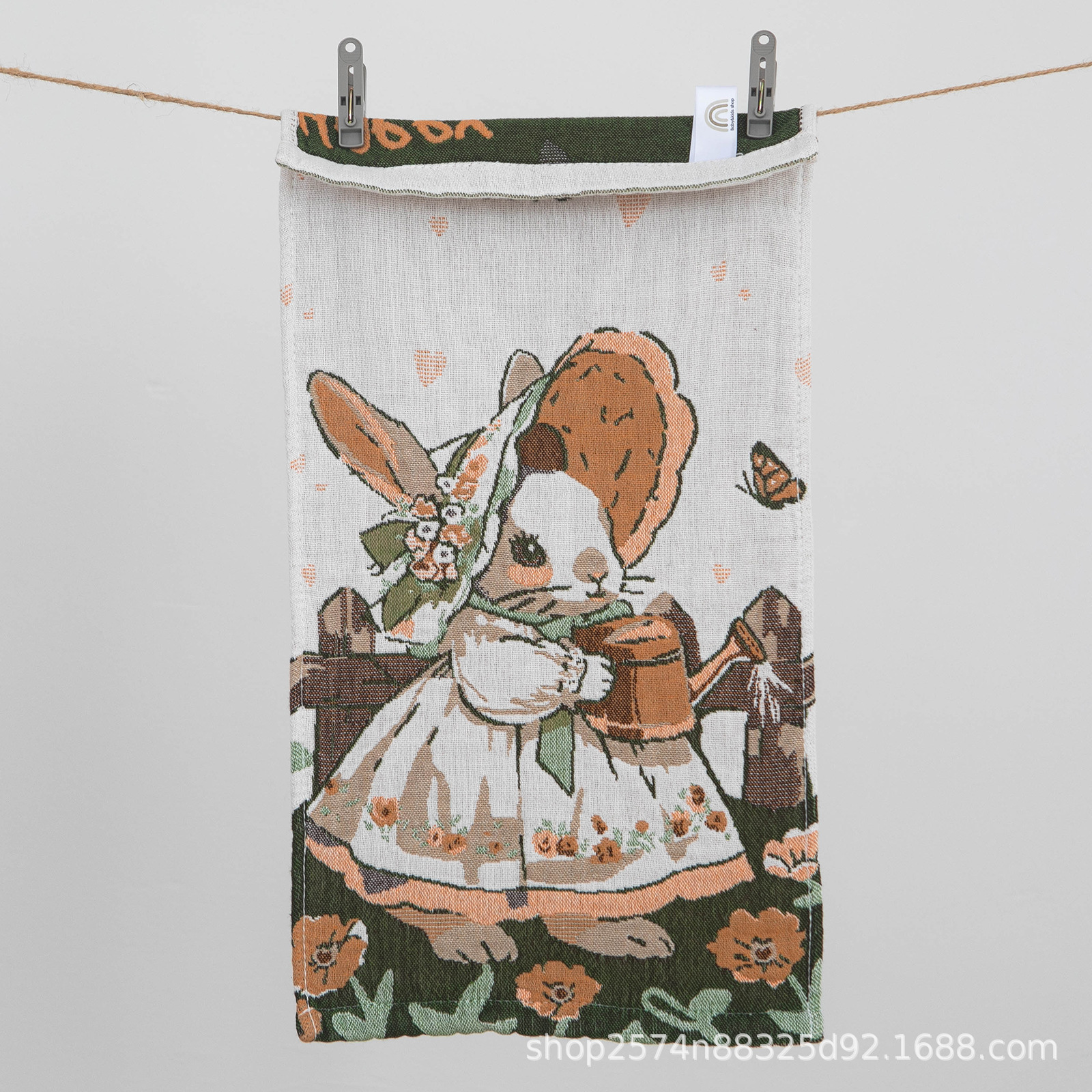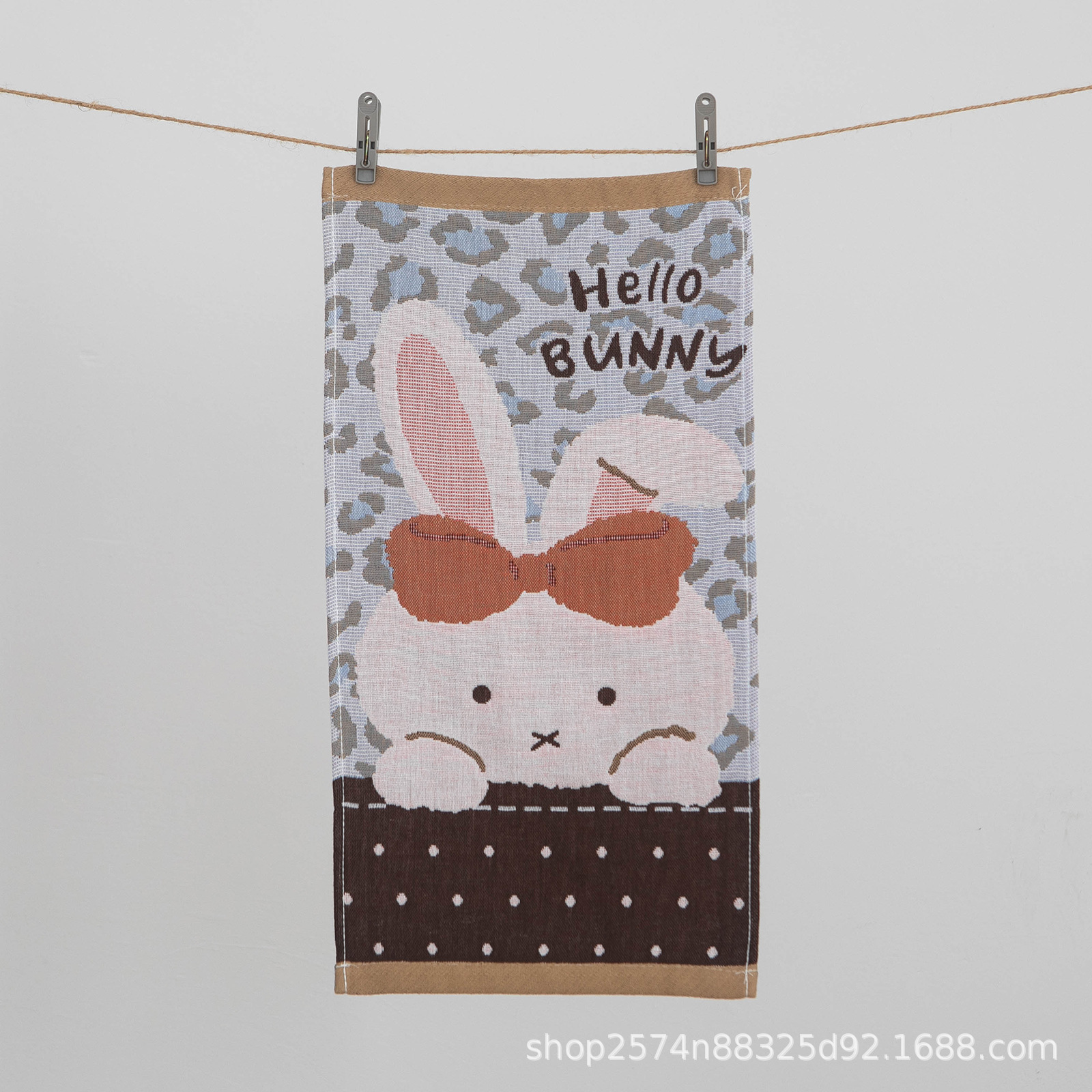 • 워시드 코튼-목가적인 토끼-작은 수건