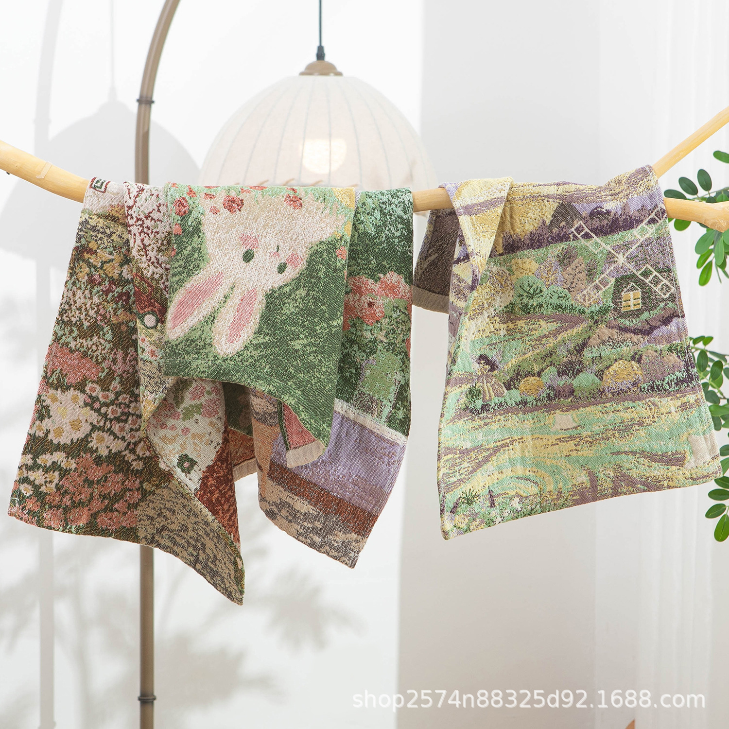 • 워시드 코튼 오일 페인팅 토끼 작은 수건