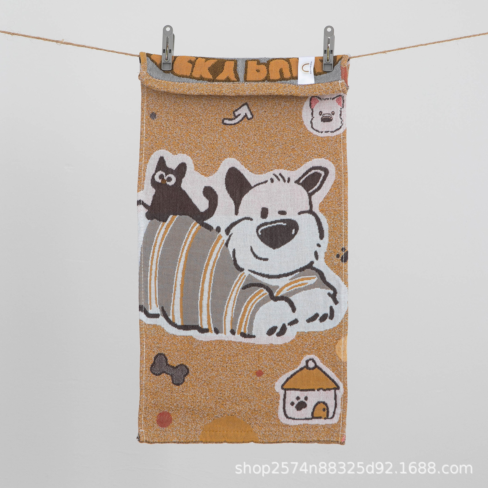 • 워시드 코튼 - 발자국 개 - 작은 수건