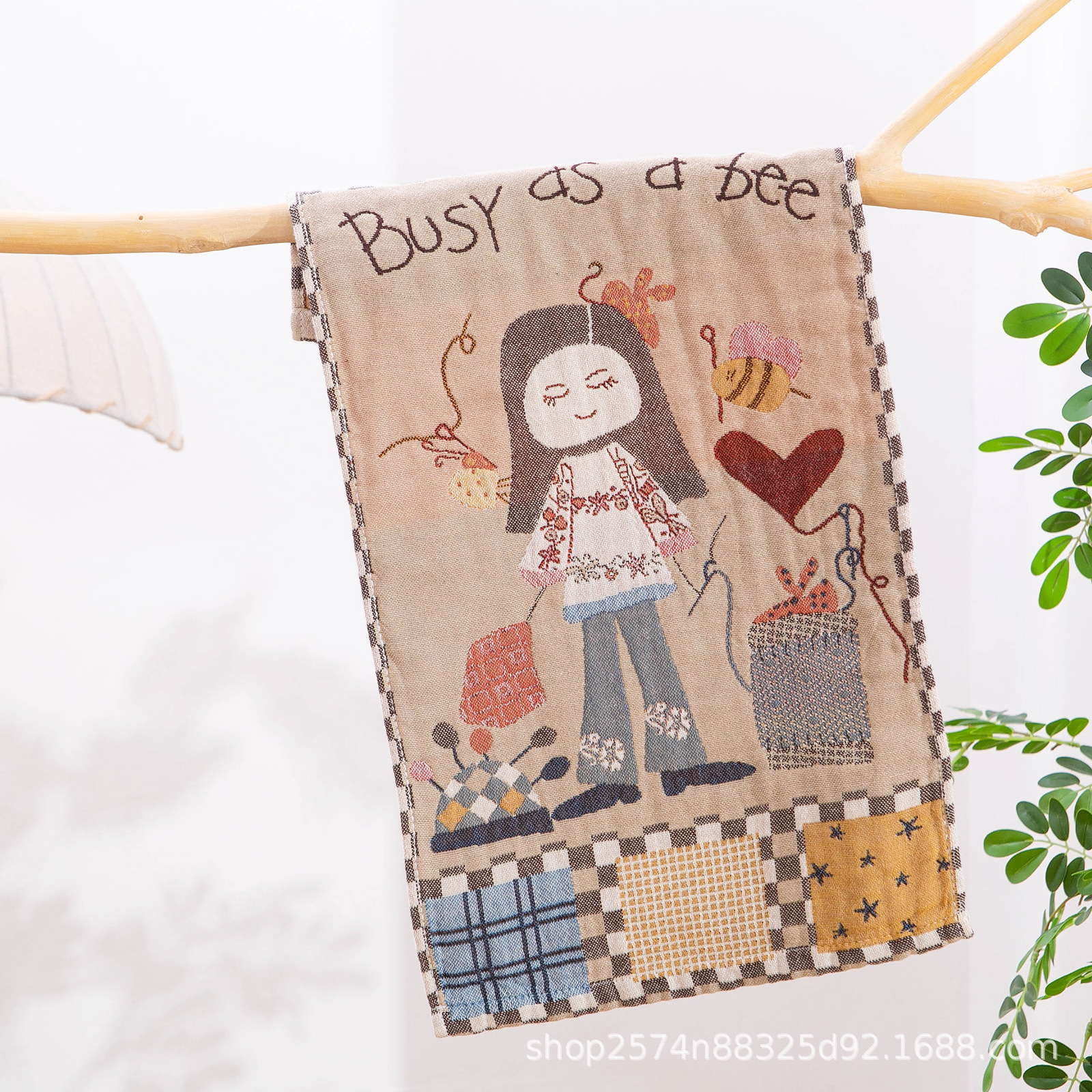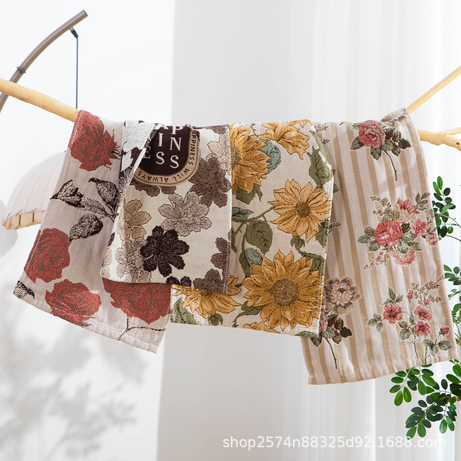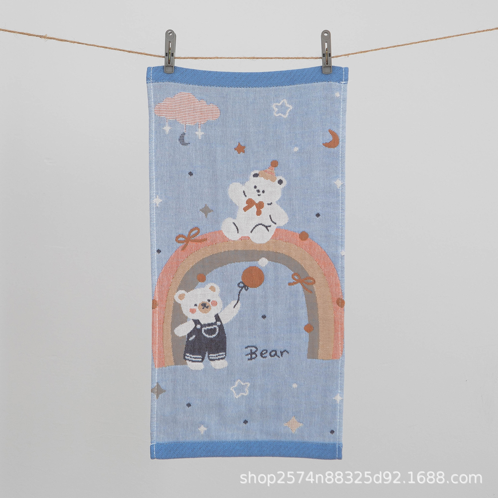 4겹 거즈 어린이 수건 순면 부드럽고 통기성이 좋은 A급 면 가정용 세안 및 목욕 아기 유치원 작은 수건
