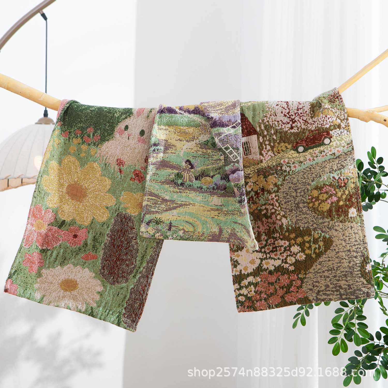 • 워시드 코튼 오일 페인팅 풍차 작은 수건