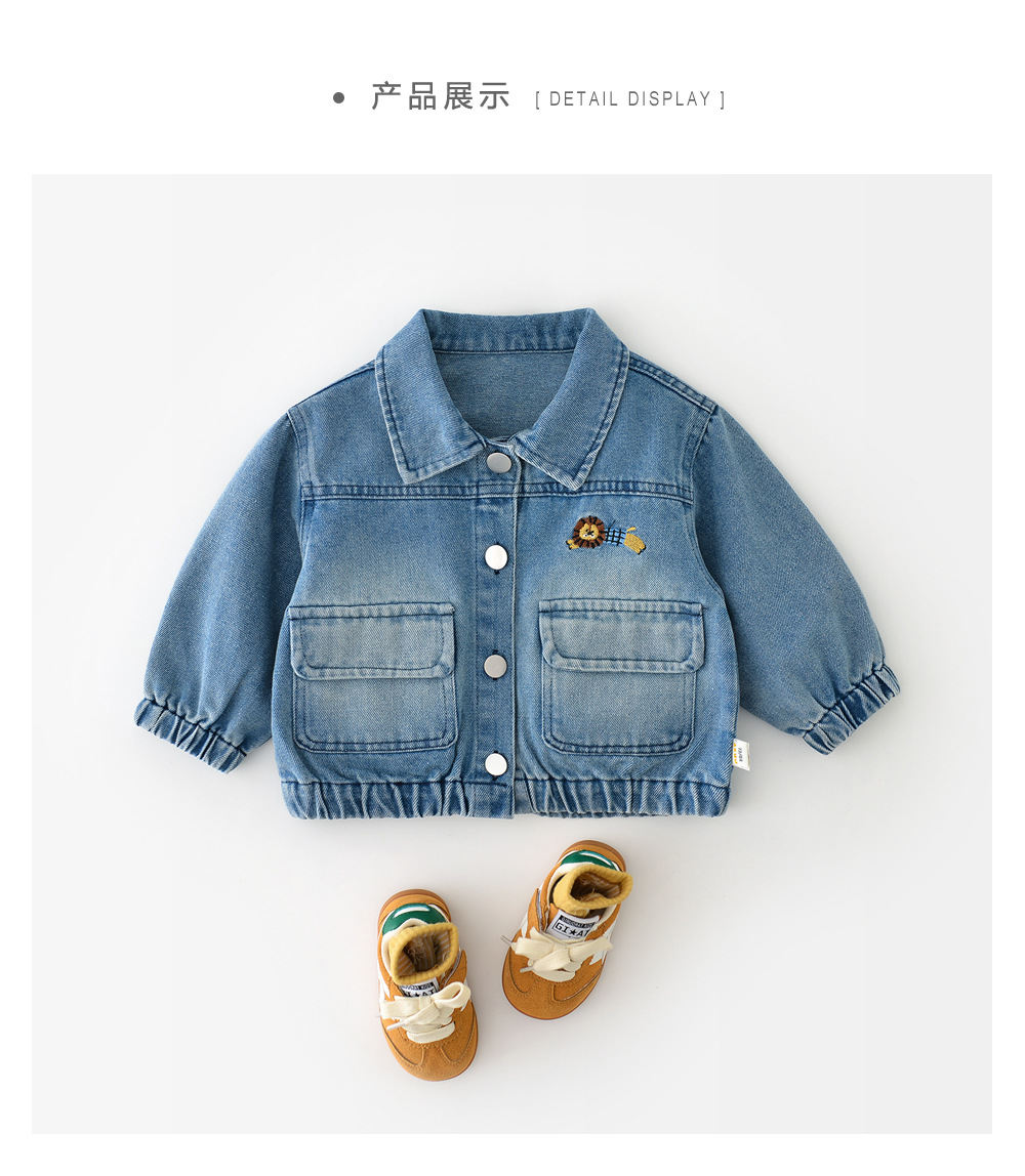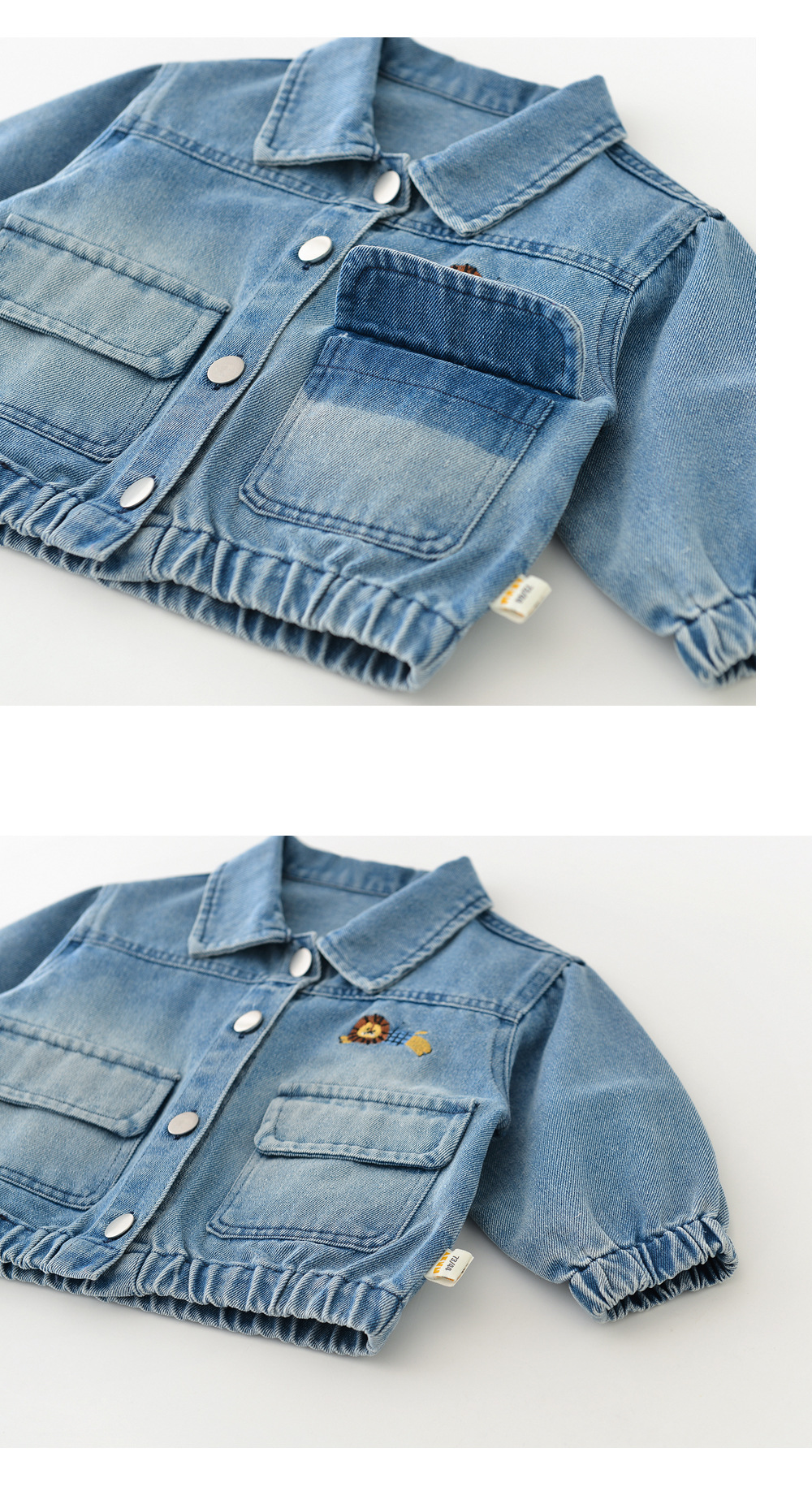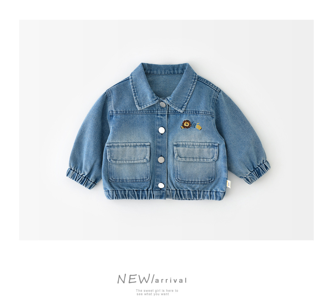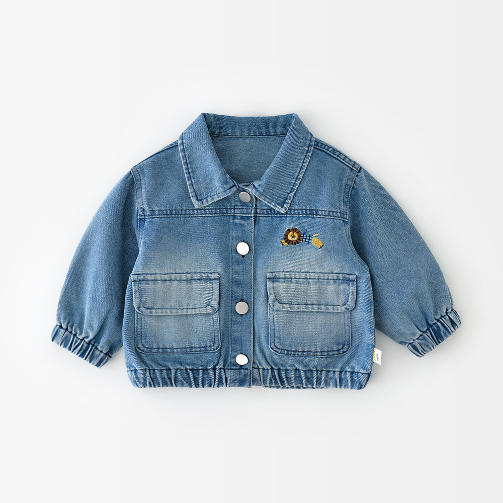 2025 한국어 버전 어린이 가을 샌드 워시 데님 재킷 유아 소년 자석 인형 탑 53735