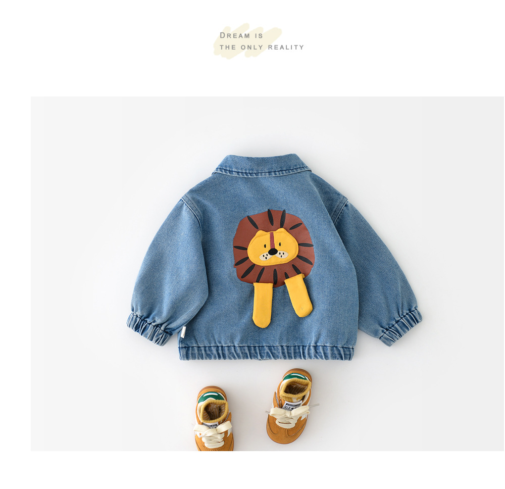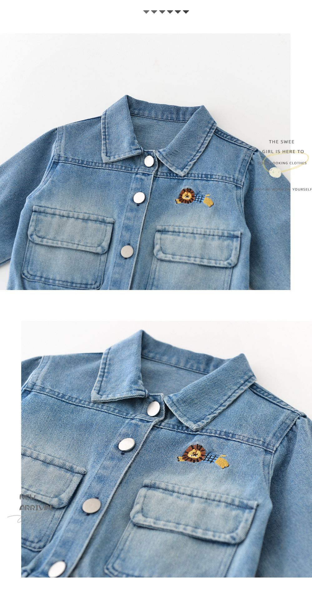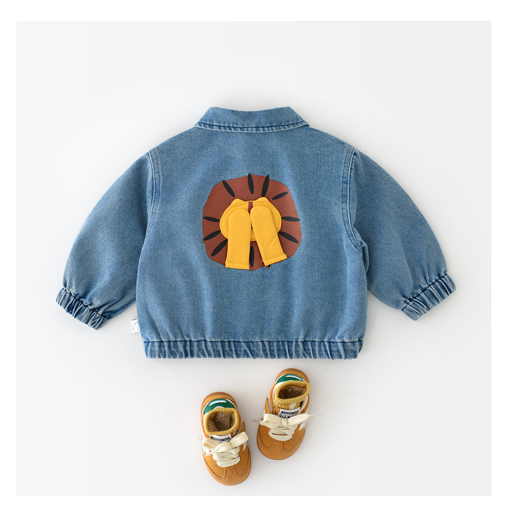 2025 한국어 버전 어린이 가을 샌드 워시 데님 재킷 유아 소년 자석 인형 탑 53735