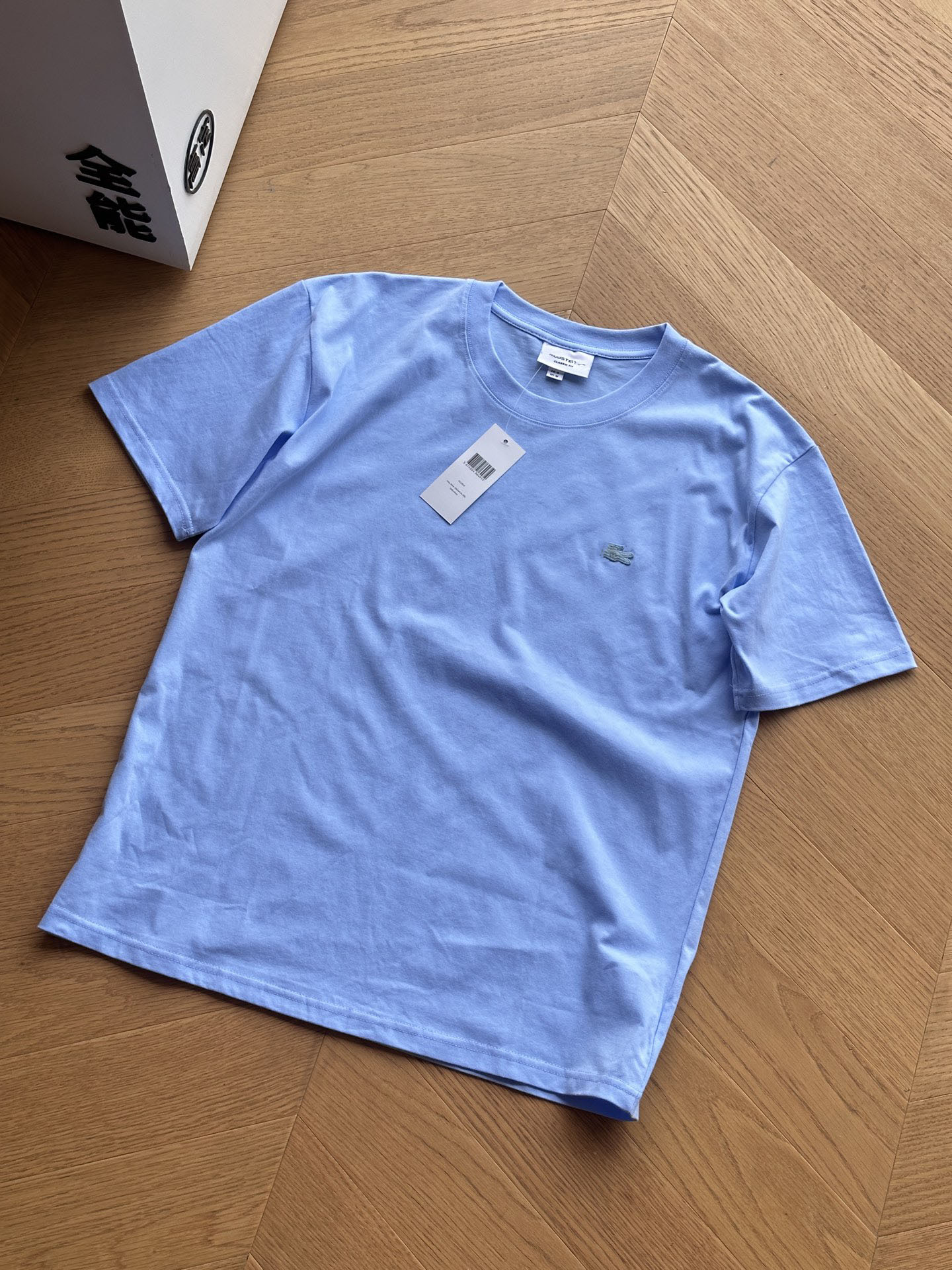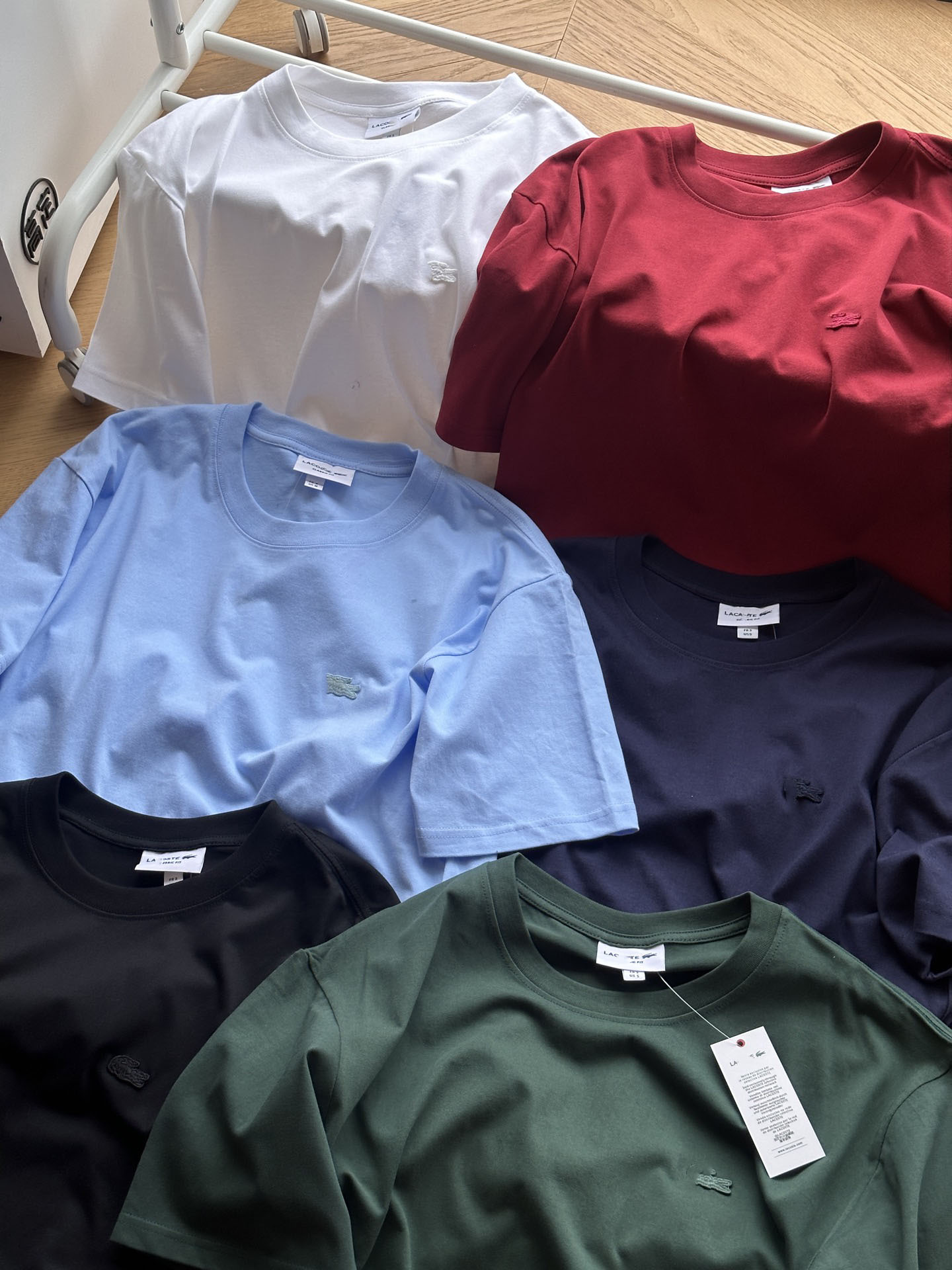 Laco Fish Label 6 색 티셔츠 솔리드 컬러 남성 여름 라운드 넥 반팔 루즈하고 편안한 고급 품질 트렌디 탑