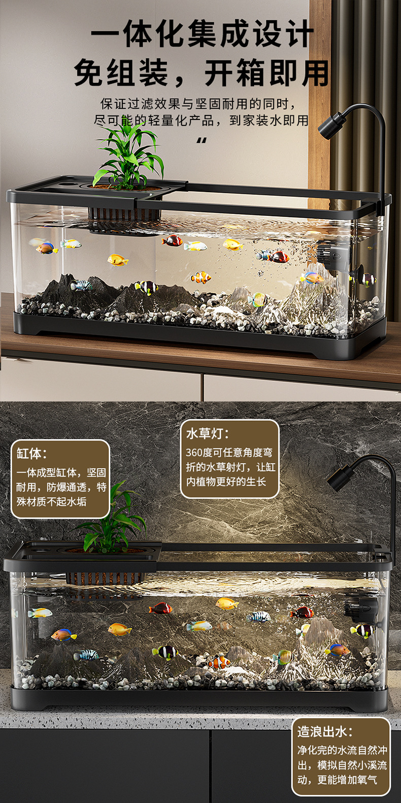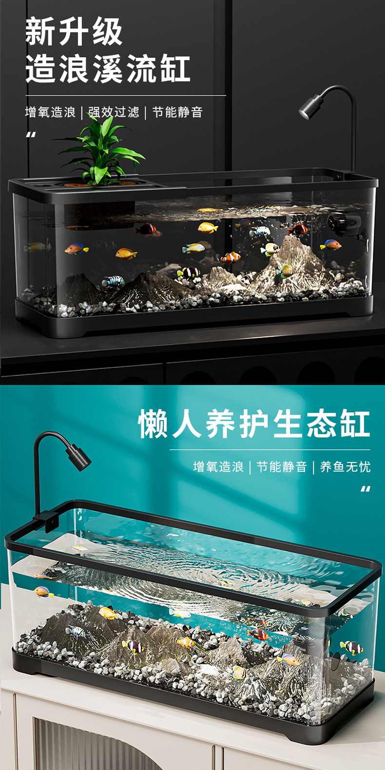 엄선된 데스크탑 어항, 가정용 웨이브 제조기, 원생 스트림 탱크, 산소화 및 자체 순환, 뚜껑이 있는 높은 투과성, 게으른 어항스토어 가기