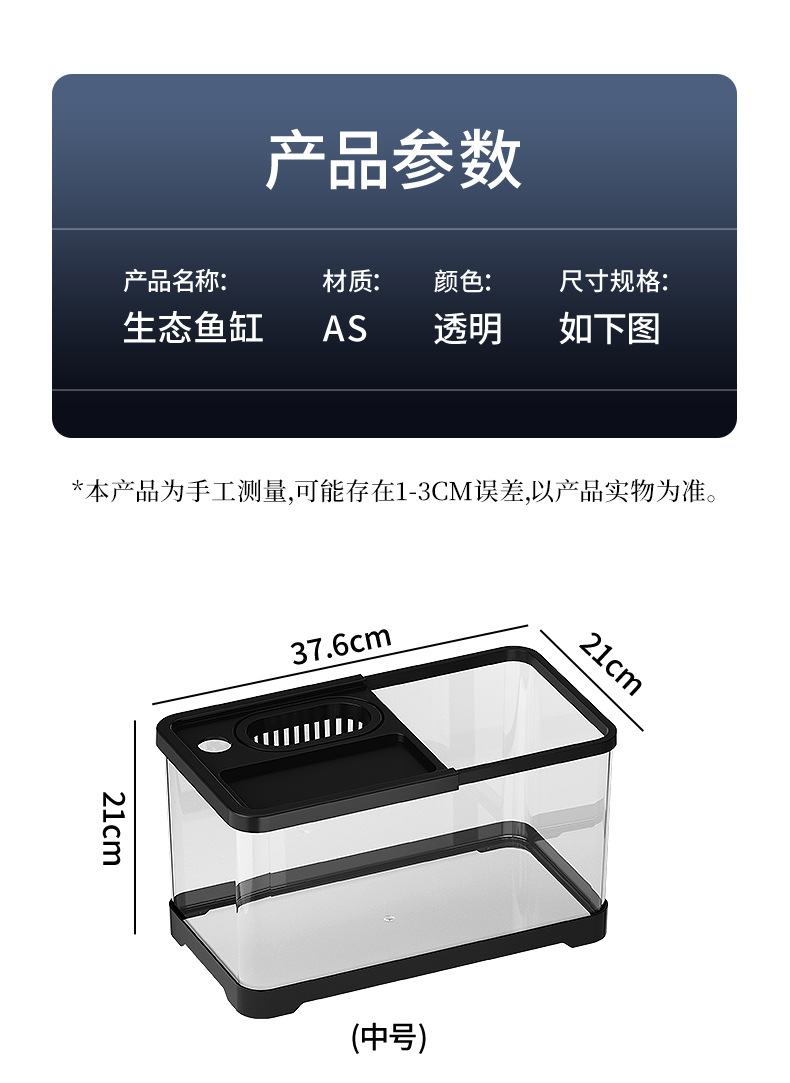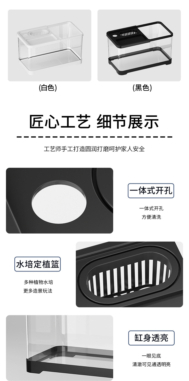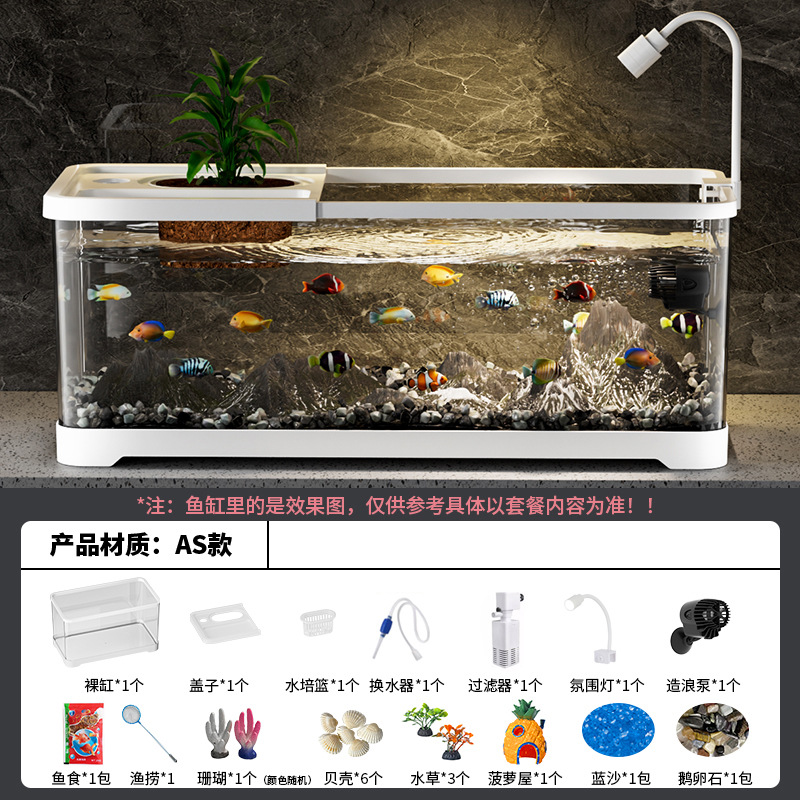 엄선된 데스크탑 어항, 가정용 웨이브 제조기, 원생 스트림 탱크, 산소화 및 자체 순환, 뚜껑이 있는 높은 투과성, 게으른 어항