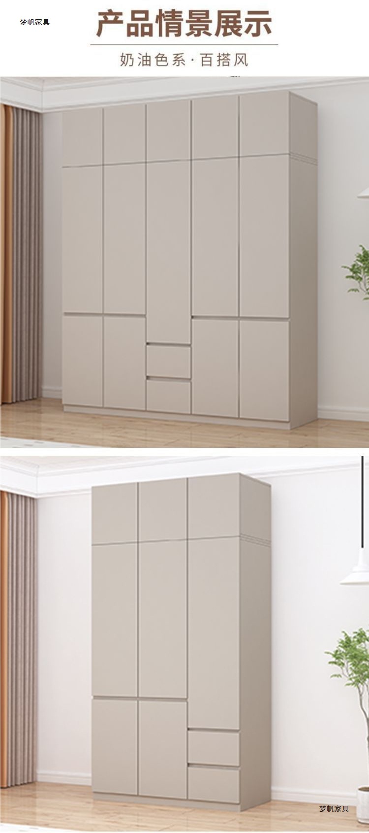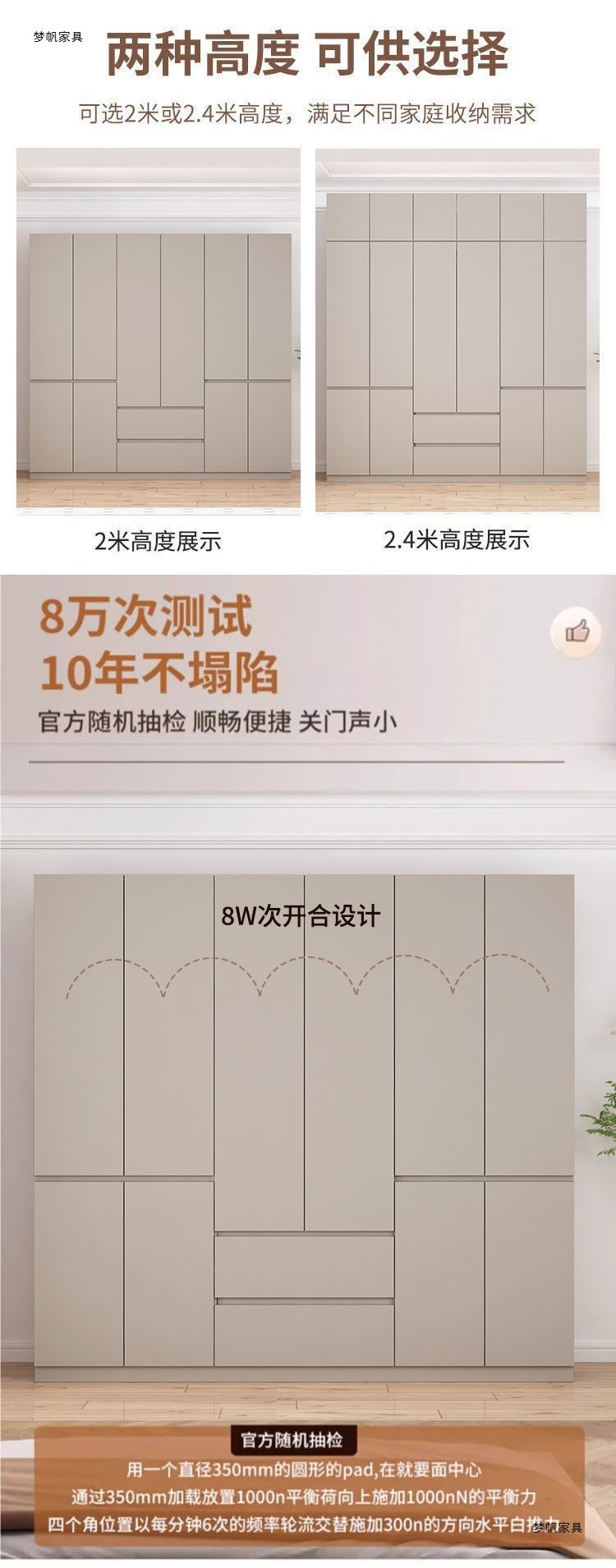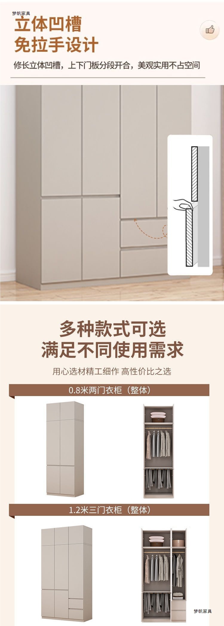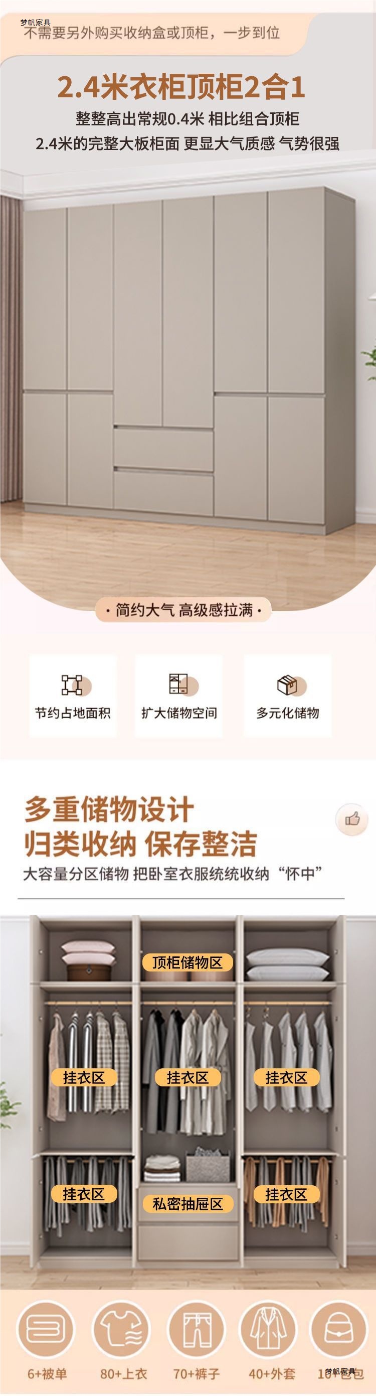 • 0.8*2.4m 2도어 옷장 + 상단 캐비닛/단단한 목재 패널 수출 품질