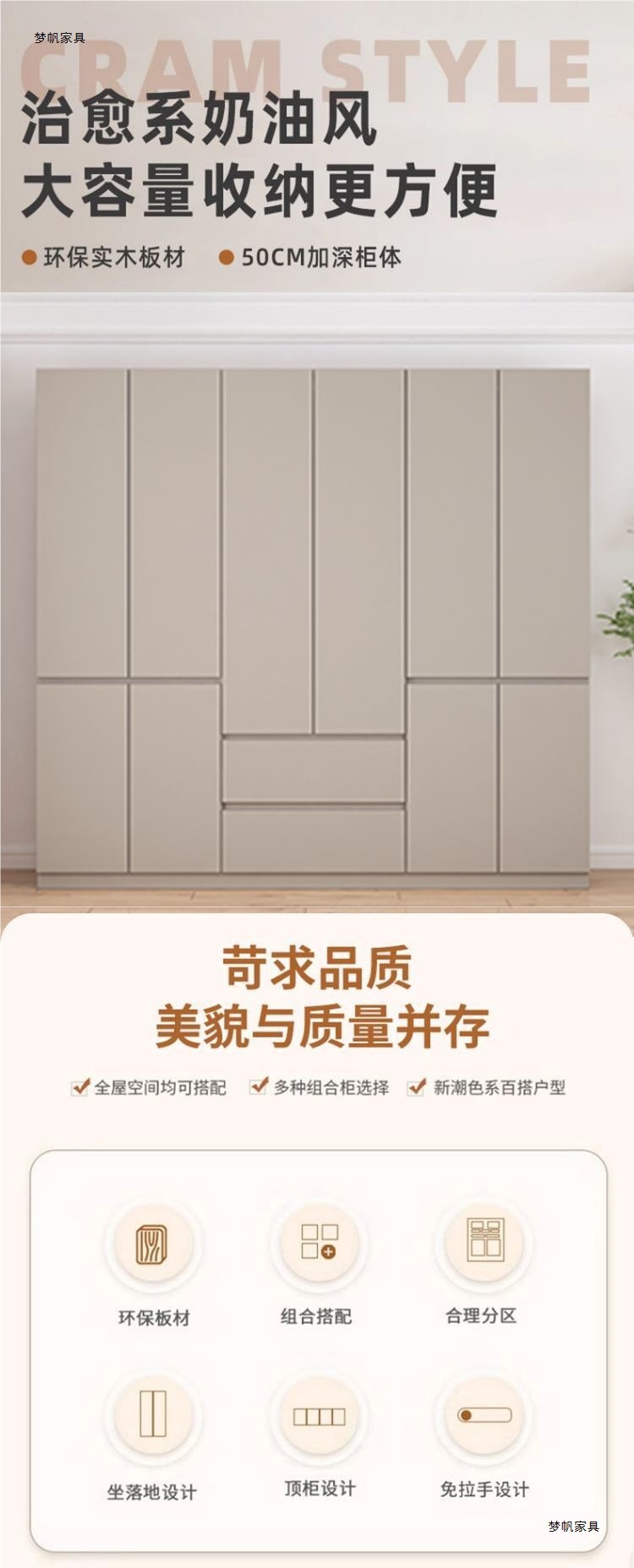 • 2.6* 3m 도어 옷장 + 상단 캐비닛/단단한 목재 수출 품질