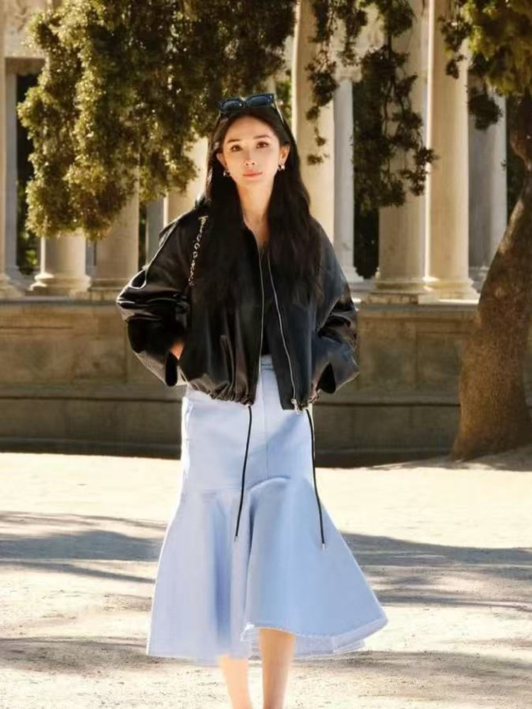 여성용 식물성 무두질 양가죽 가죽 자켓 짧은 정품 가죽 2025 새로운 Yang Mi 같은 스타일 여성용 가죽 자켓 루즈 버전스토어 가기