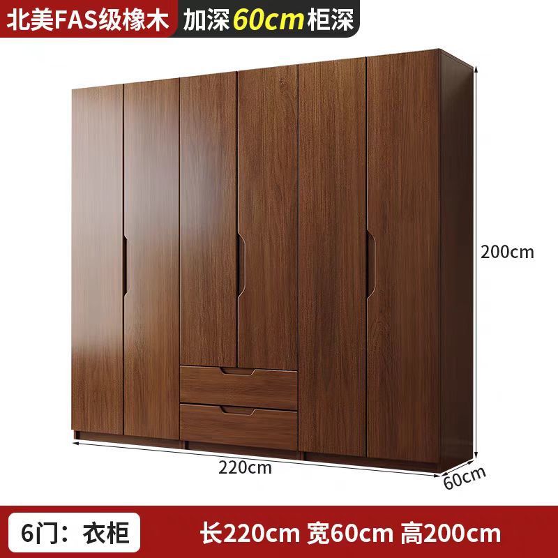 • 2.2m 긴 6도어 이중 서랍 옷장 [올 원목 오크]