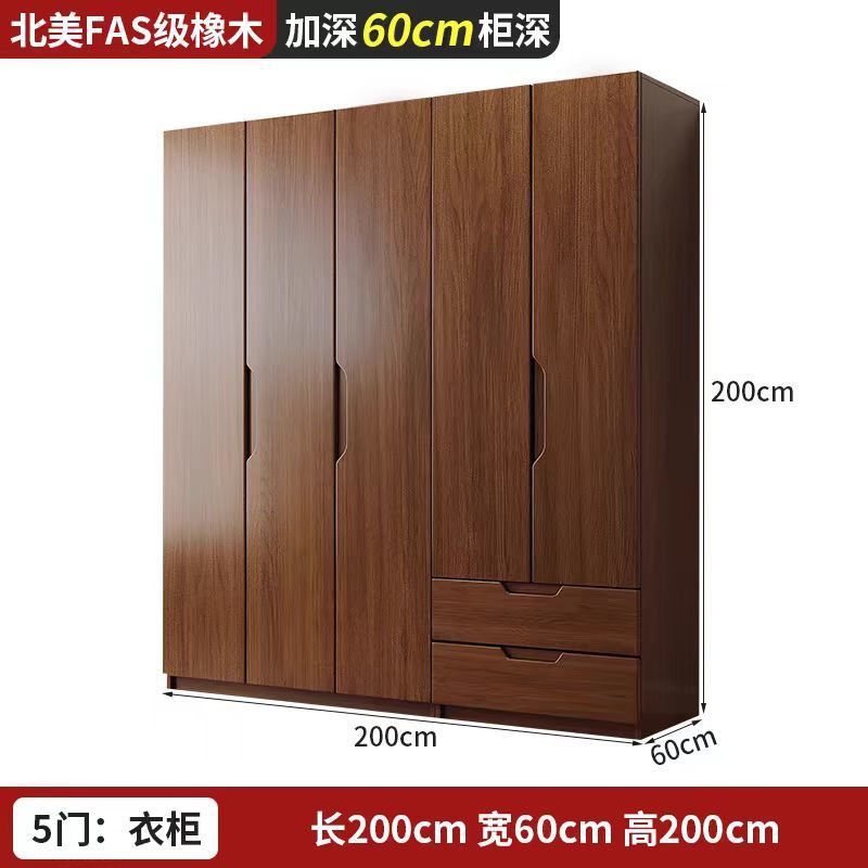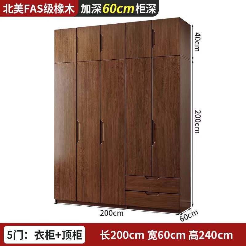 • 2.0m 긴 5도어 옷장 + 상단 수납장 [올 원목 오크]