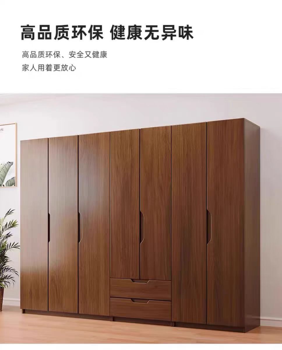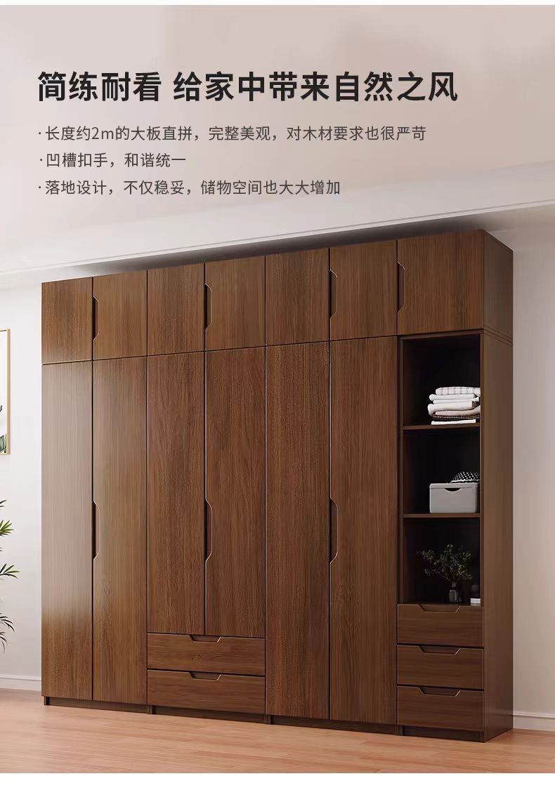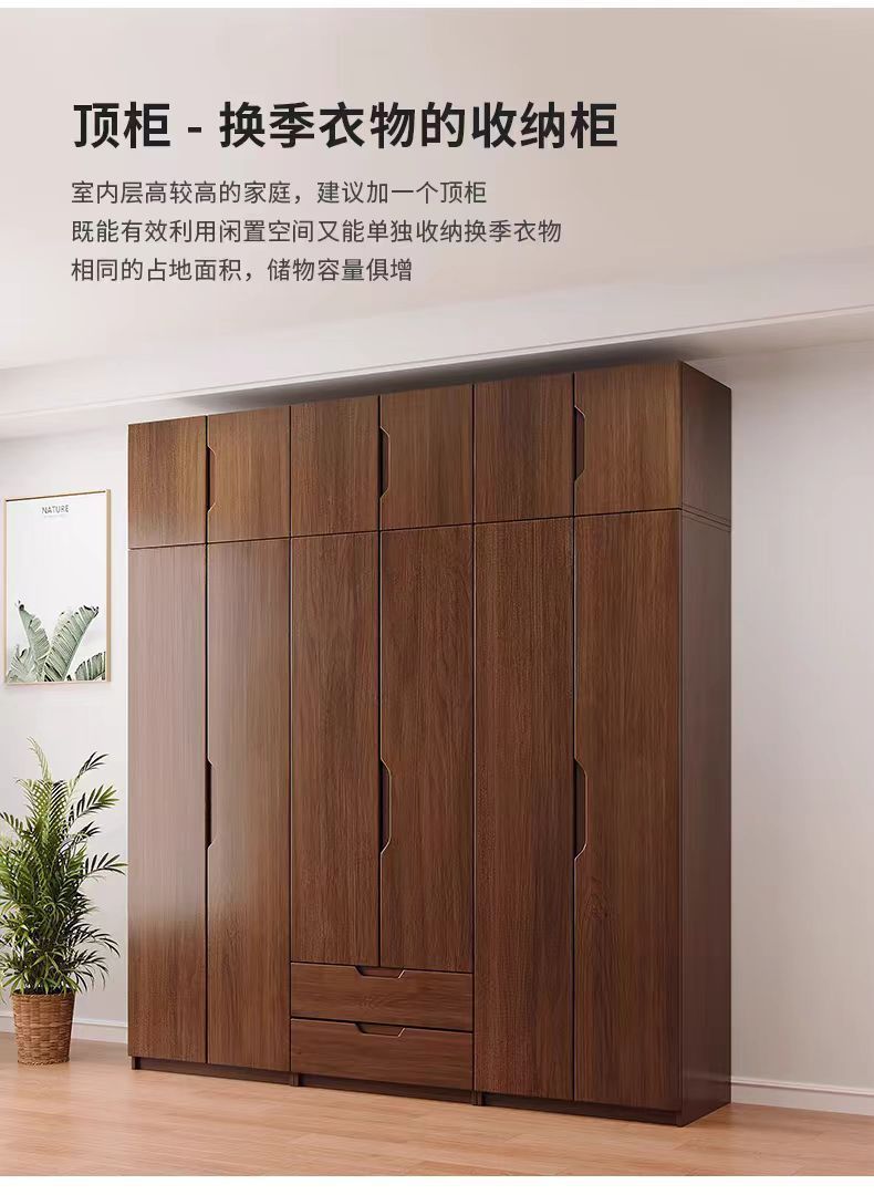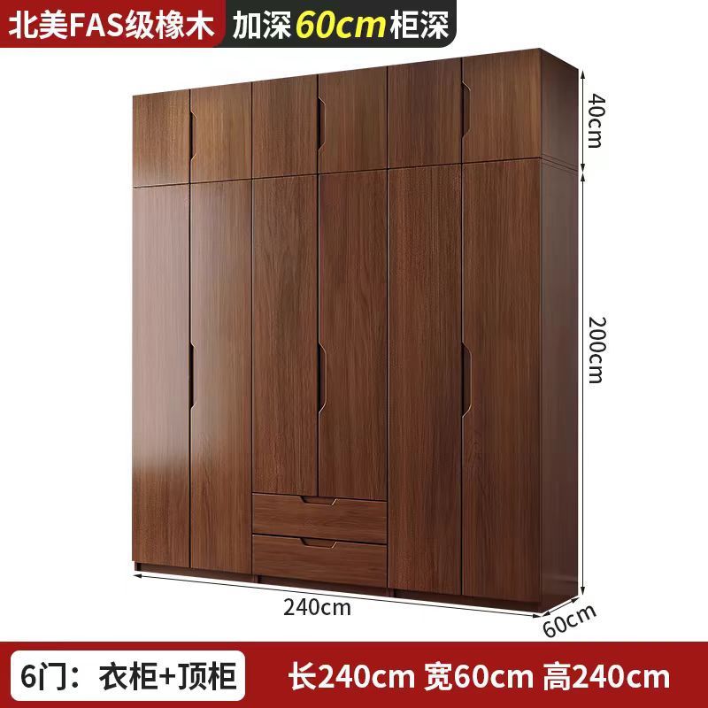 • 2.4m 긴 6도어 이중 서랍 옷장 + 상단 캐비닛 [전체 원목 오크]
