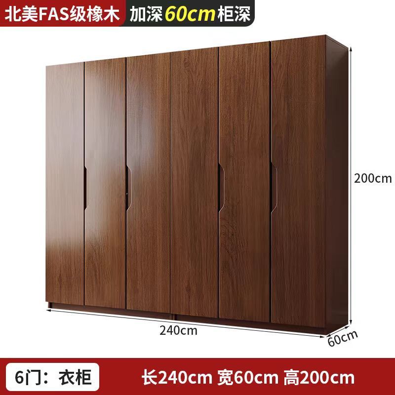 • 2.4m 긴 6도어 이중 서랍 옷장 [올 원목 오크]