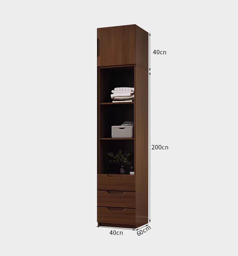 • 0.8cm 서랍이 있는 긴 2도어 옷장 + 상단 캐비닛 [올 원목 오크]