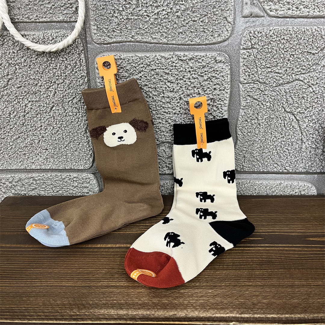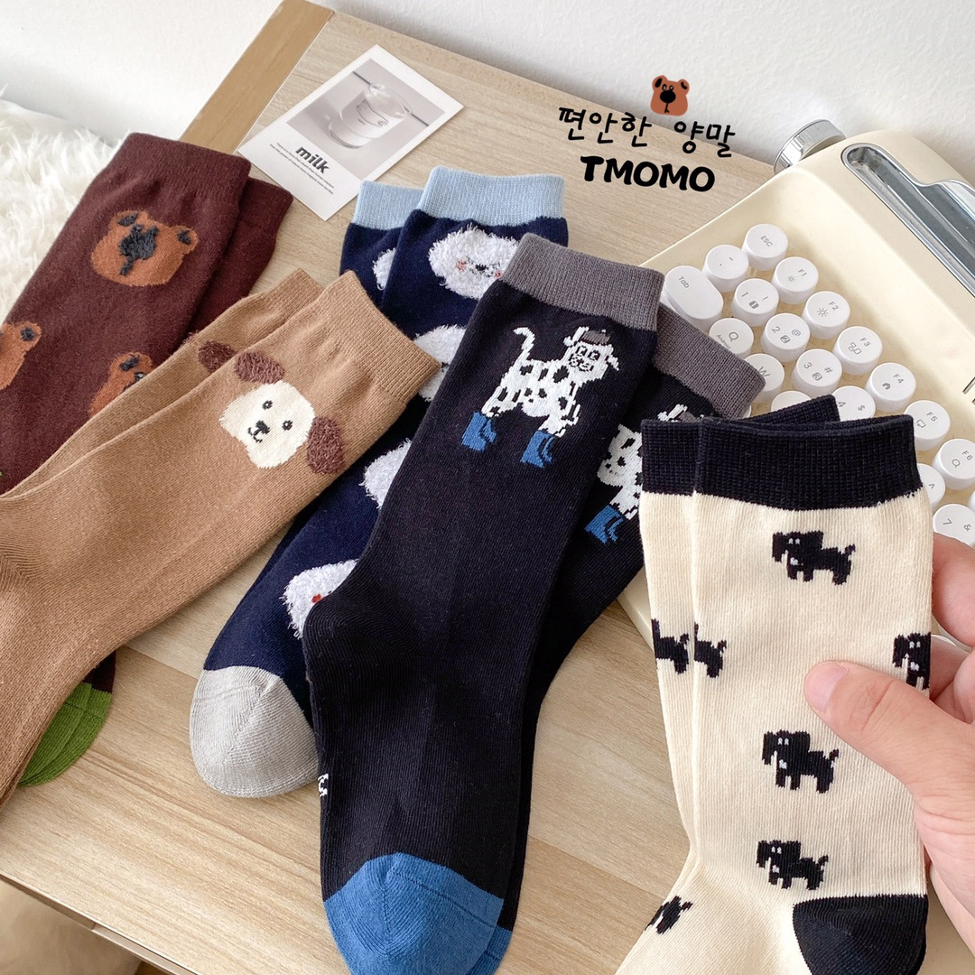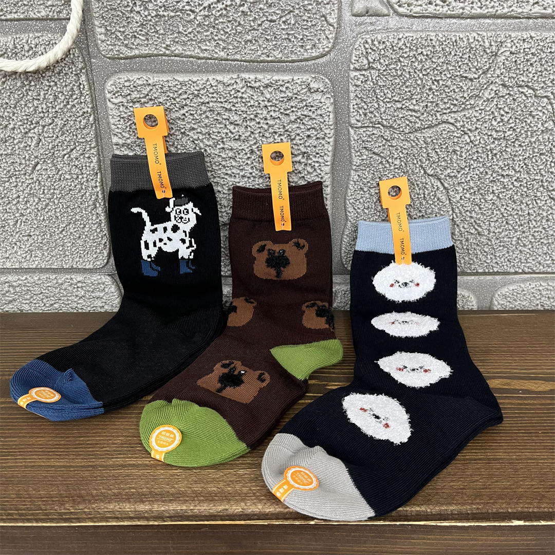 TMOMO 토끼 침묵의 가을 겨울 종아리 중간 양말 풀 프린트 곰 달마시안 콤비네이션 면 양말 아동 양말 트렌디 양말 25AW035