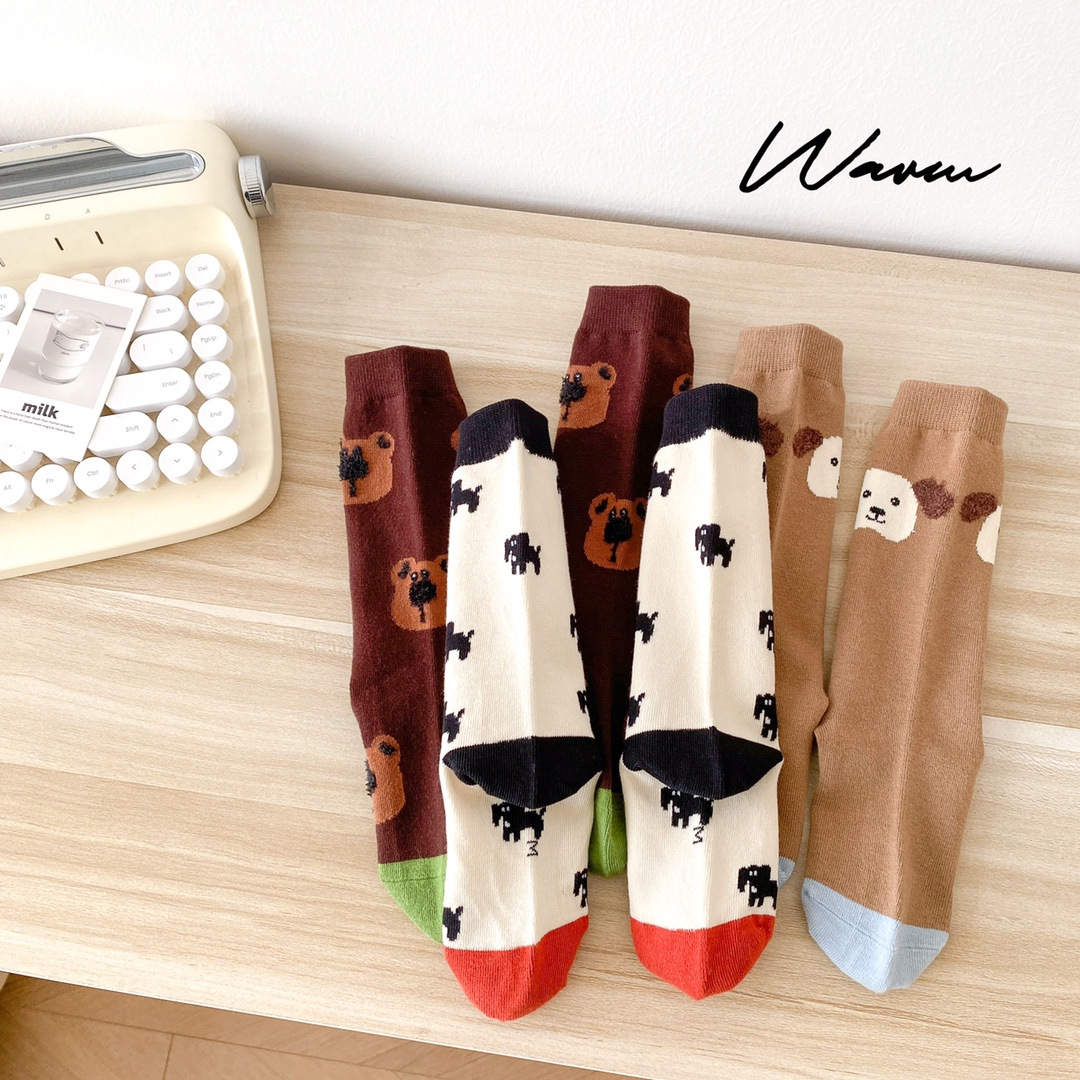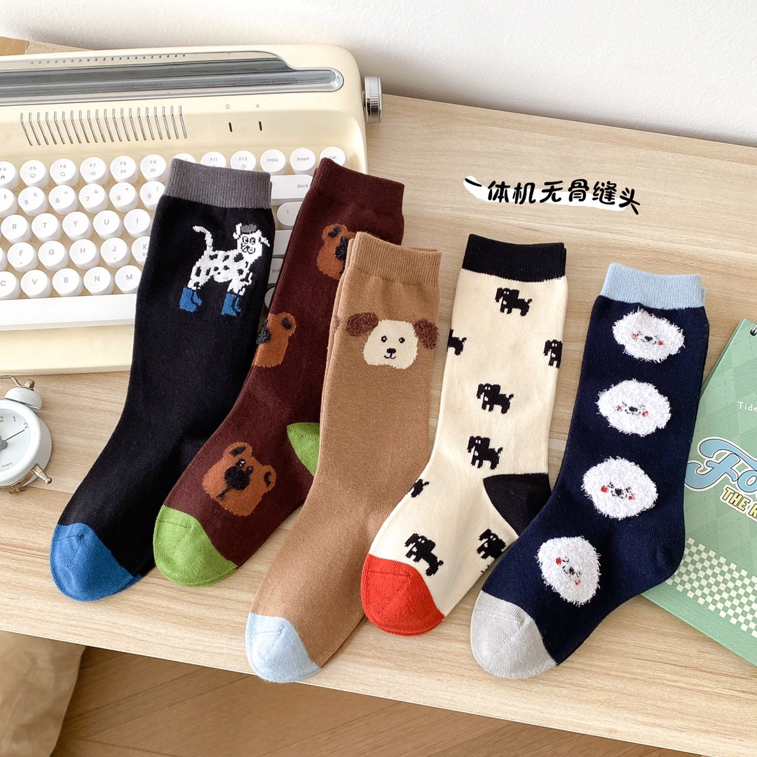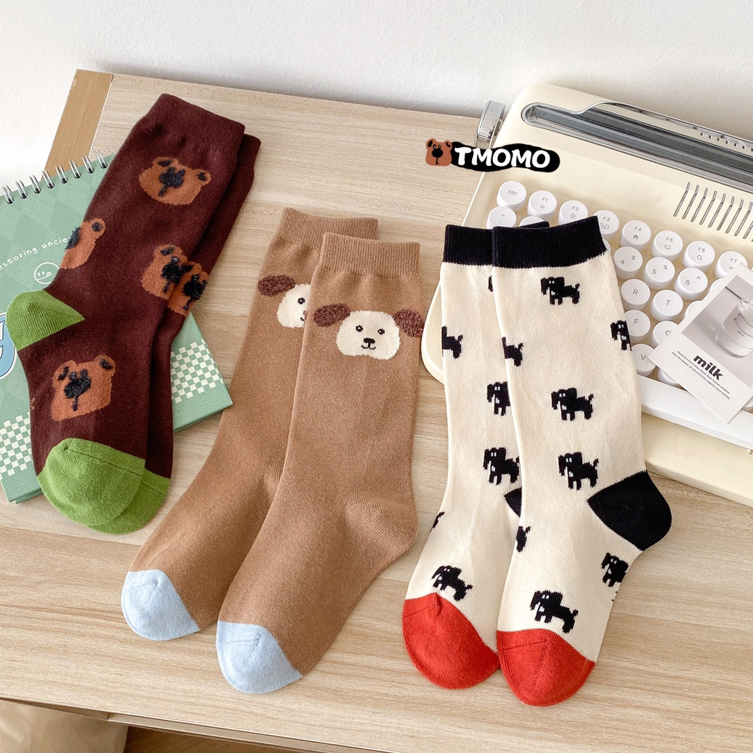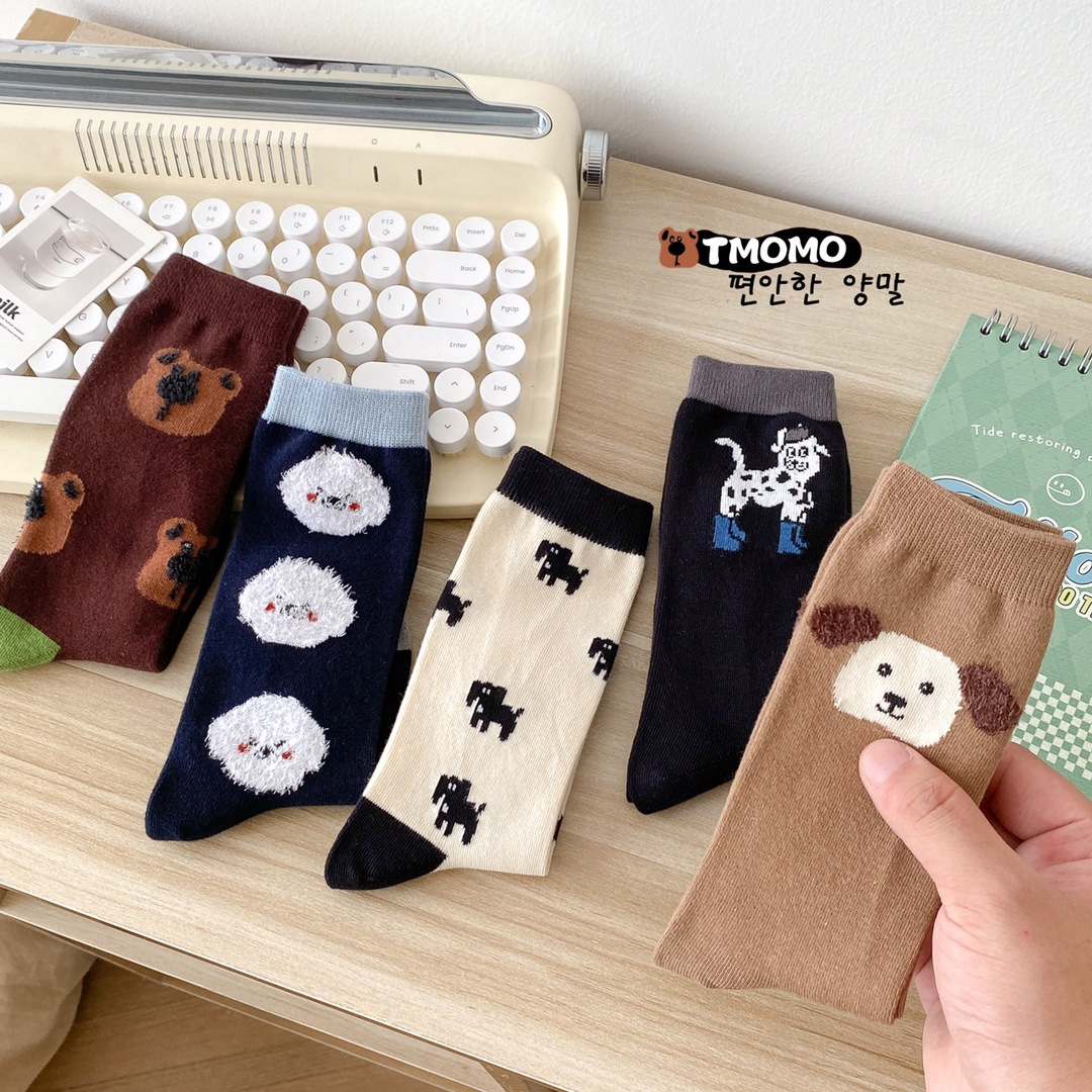 TMOMO 토끼 침묵의 가을 겨울 종아리 중간 양말 풀 프린트 곰 달마시안 콤비네이션 면 양말 아동 양말 트렌디 양말 25AW035