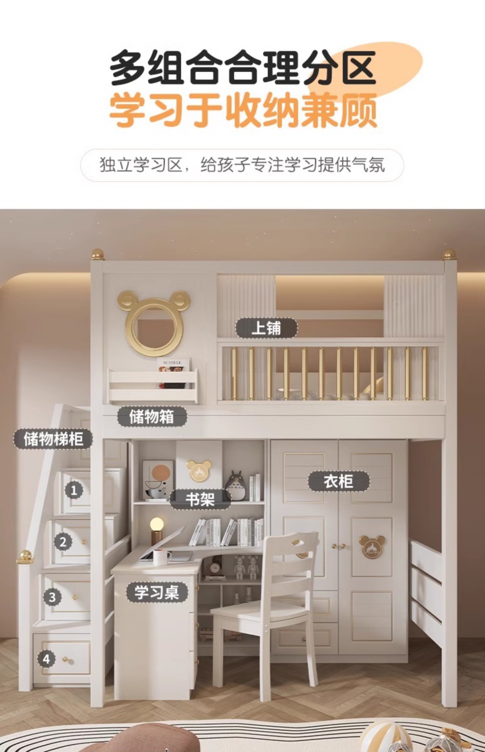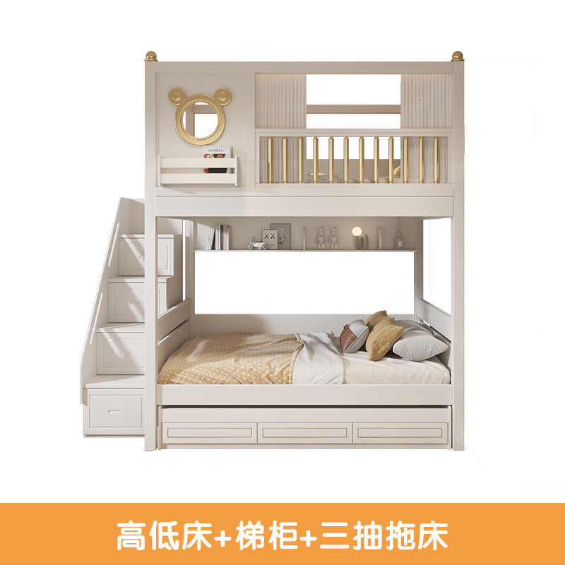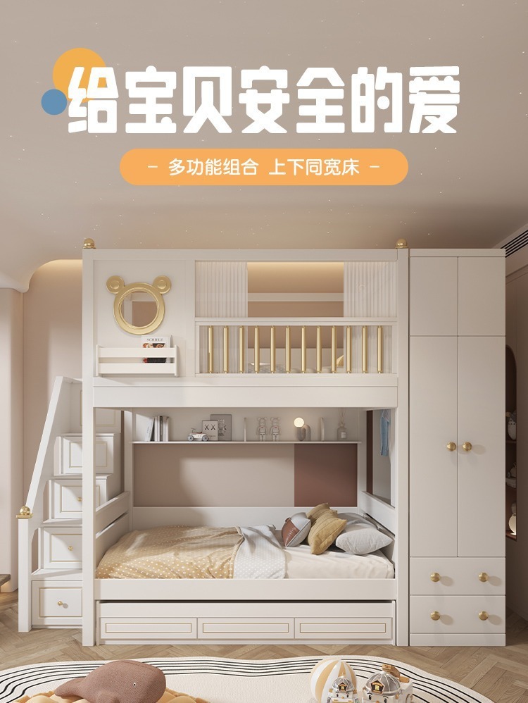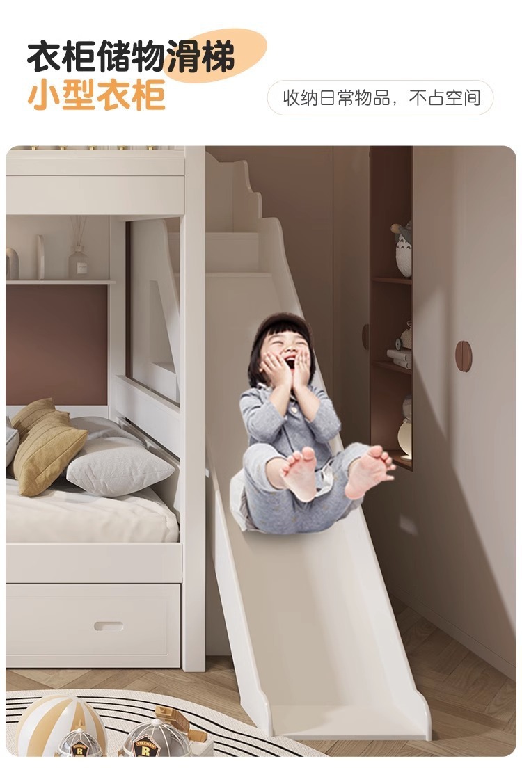 어린이 이층침대, 높낮이침대, 가벼운 고급 이층침대, 상단 침대와 하단 테이블 조합, 옷장이 있는 이층침대 슬라이드