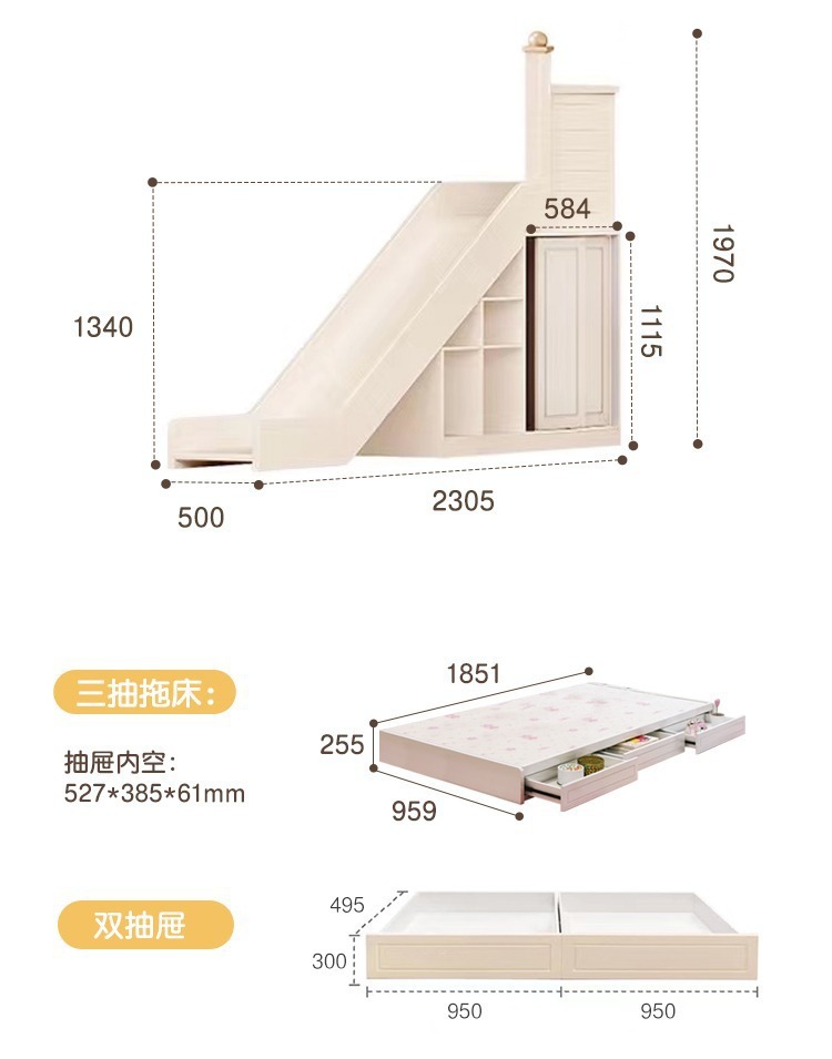• 평행 침대 + 사다리 캐비닛 + 드래그 침대 + 미닫이 옷장 + 상단 커튼