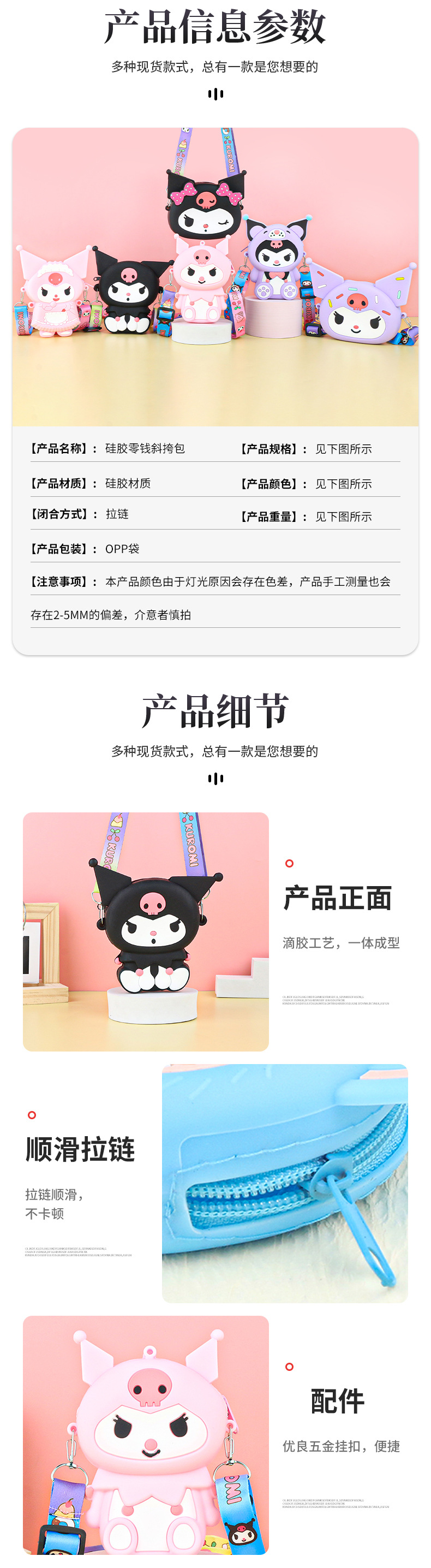 Kuromi 어린이 동전 지갑 유치원 어린 소녀 크로스 바디 만화 실리콘 가방 하이 엔드 싱글 숄더 공주 가방스토어 가기