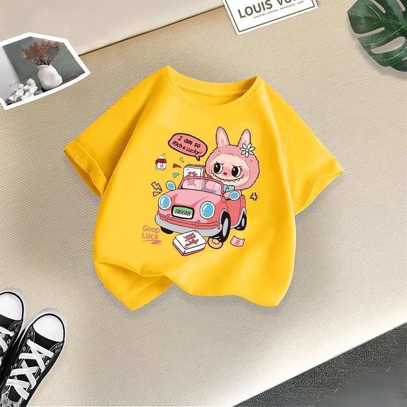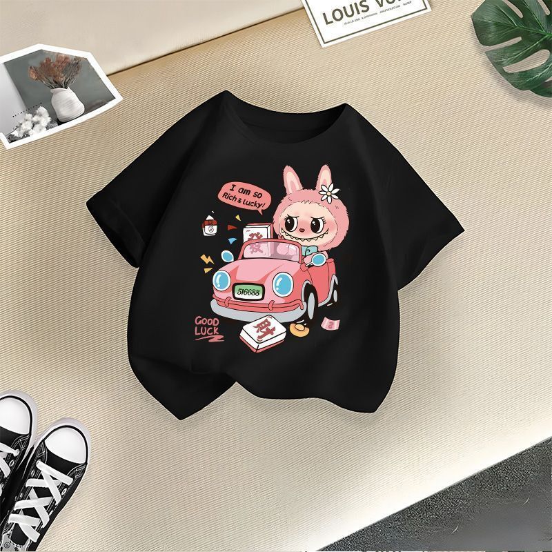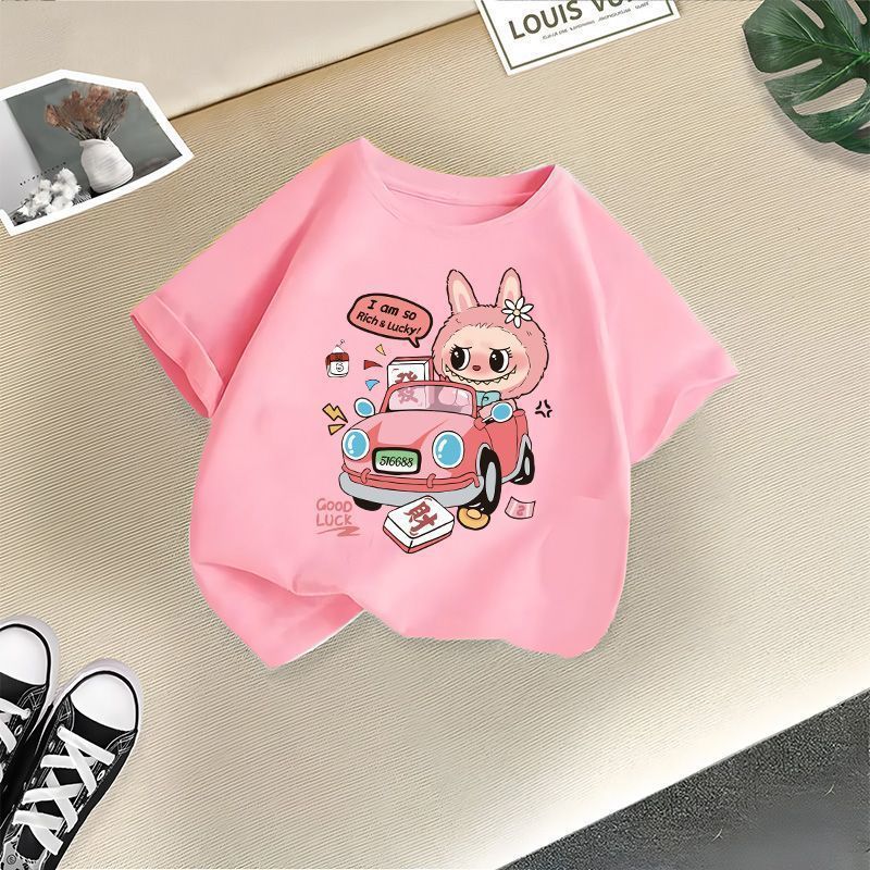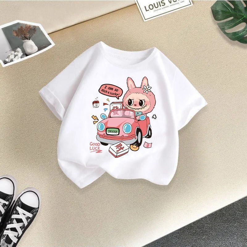 Faca Labubu의 새로운 티셔츠, 중소형 아동용 트렌디 스타일, 여아용 패셔너블 반팔 만화 귀여운 핫 스타일 티셔츠 상의