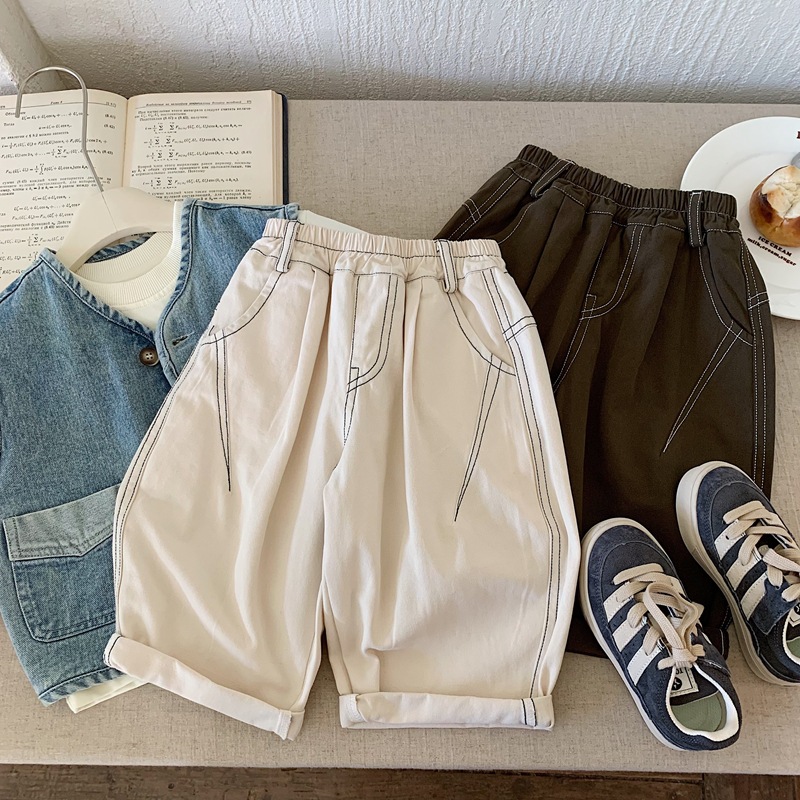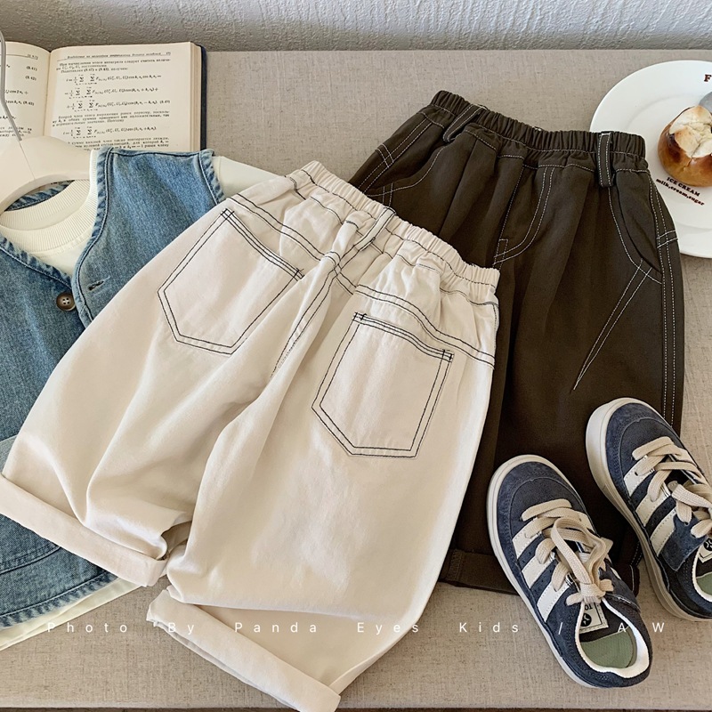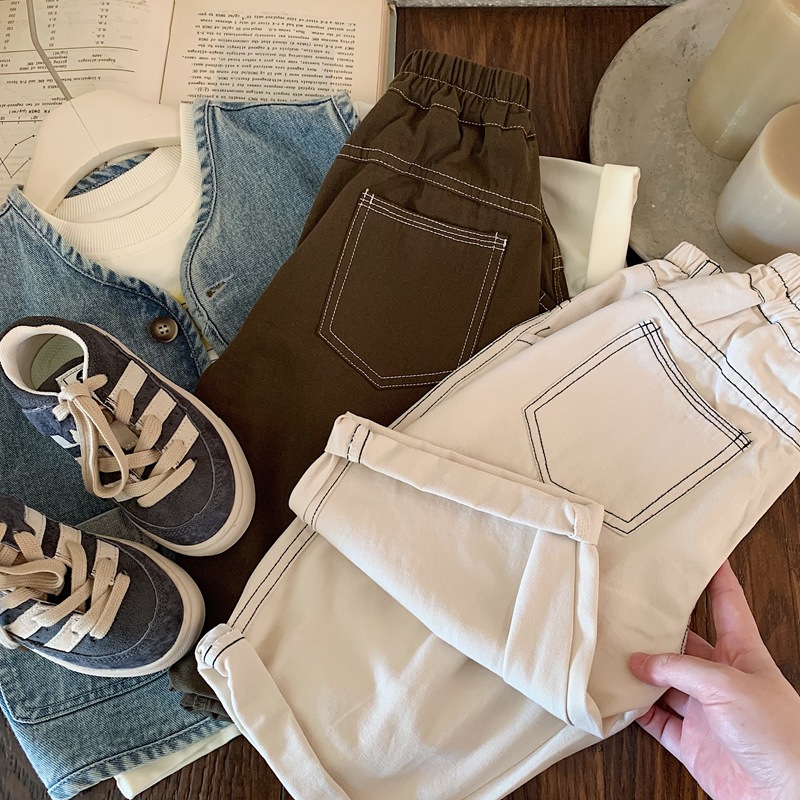 Bora 소년 바지 봄, 가을 2025 새로운 아동 의류 아동 탑스티치 바지 소년 바지 어린이 가을 캐주얼 바지스토어 가기