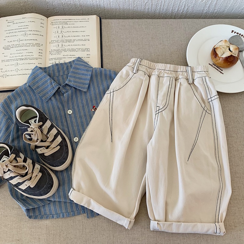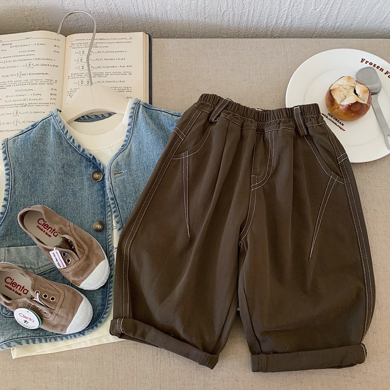 Bora 소년 바지 봄, 가을 2025 새로운 아동 의류 아동 탑스티치 바지 소년 바지 어린이 가을 캐주얼 바지