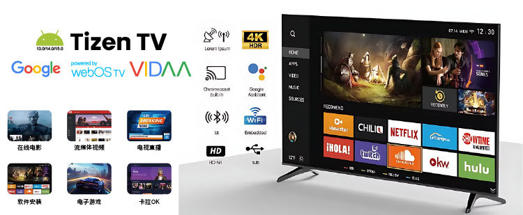 대외 무역 멕시코 MINILED TV 32인치 4K LCD TV 초박형 75 85inch 네트워크 TV 제조업체스토어 가기
