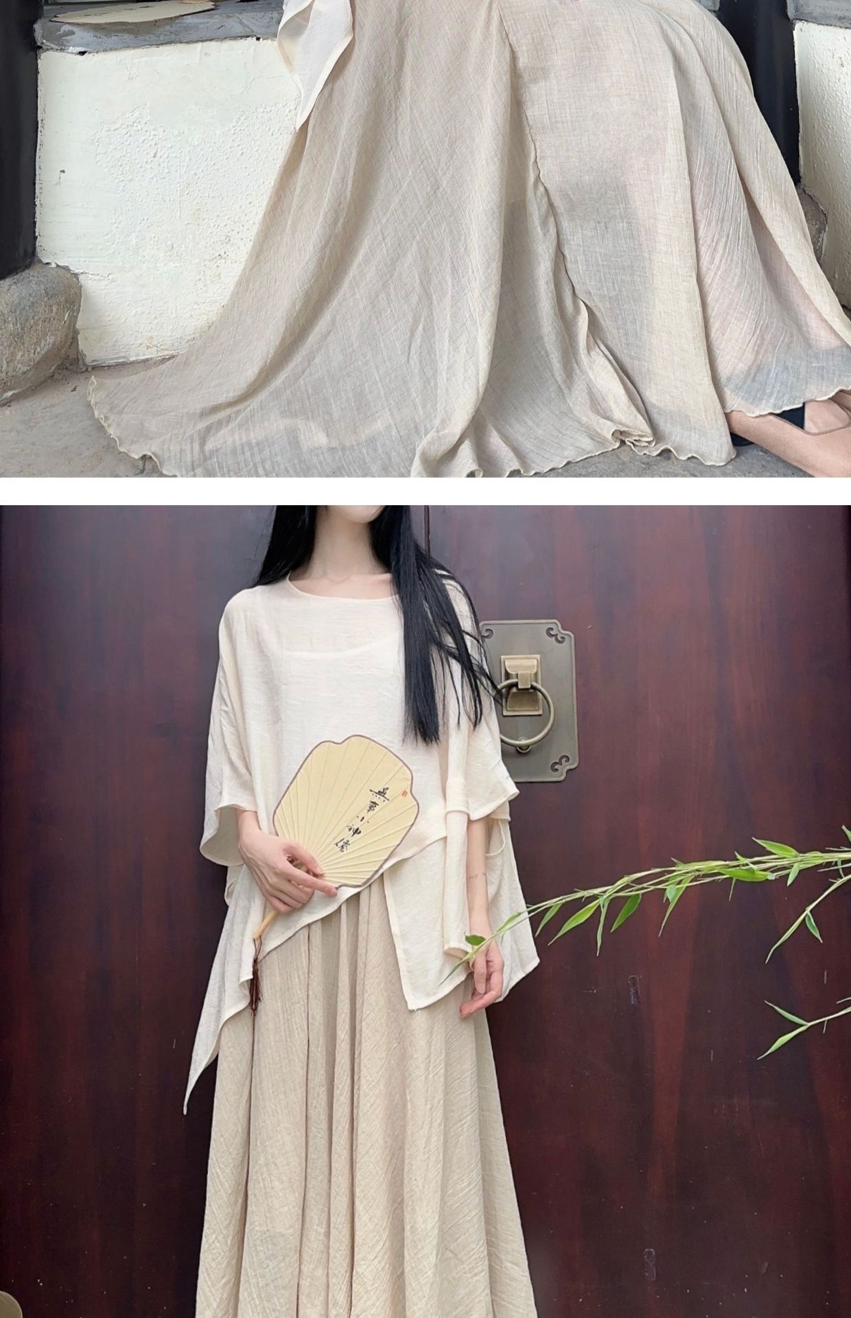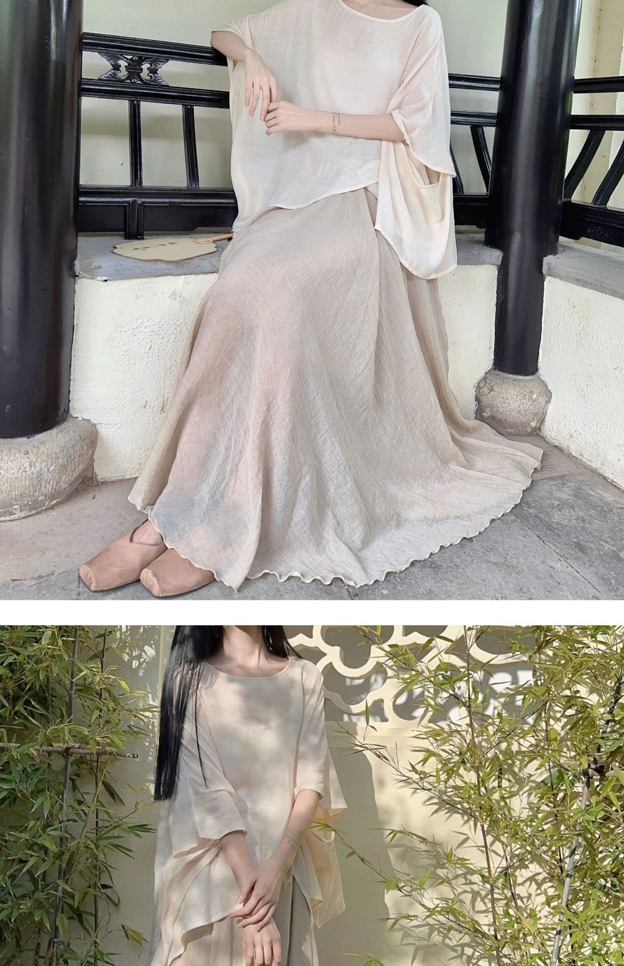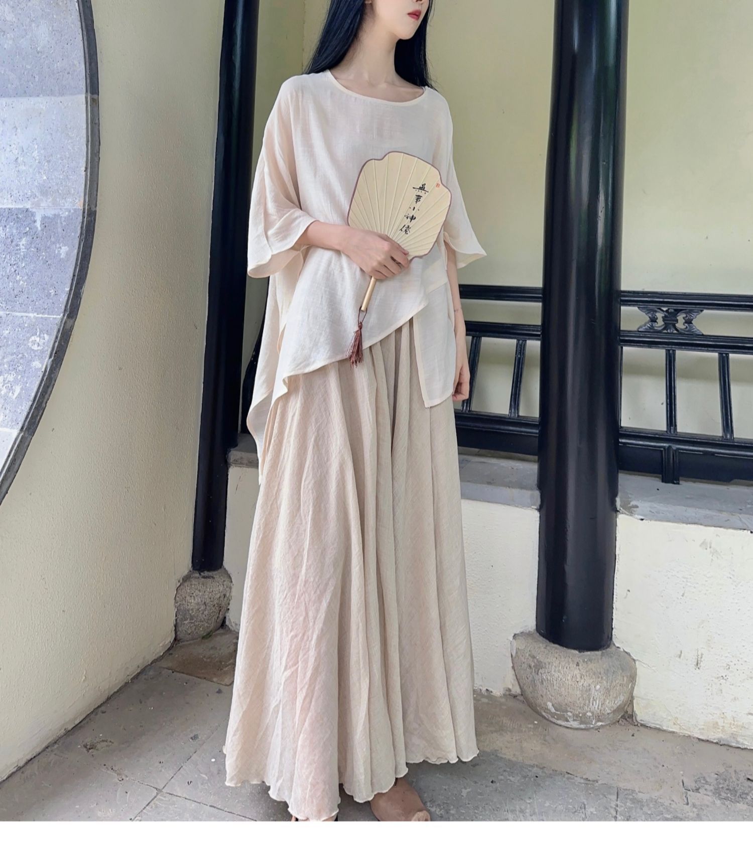 여성을위한 새로운 중국 스타일 선명한 쿨 슈트 스커트 여름 중국 스타일 반팔 탑 불규칙한면과 린넨 스커트 3 피스 세트