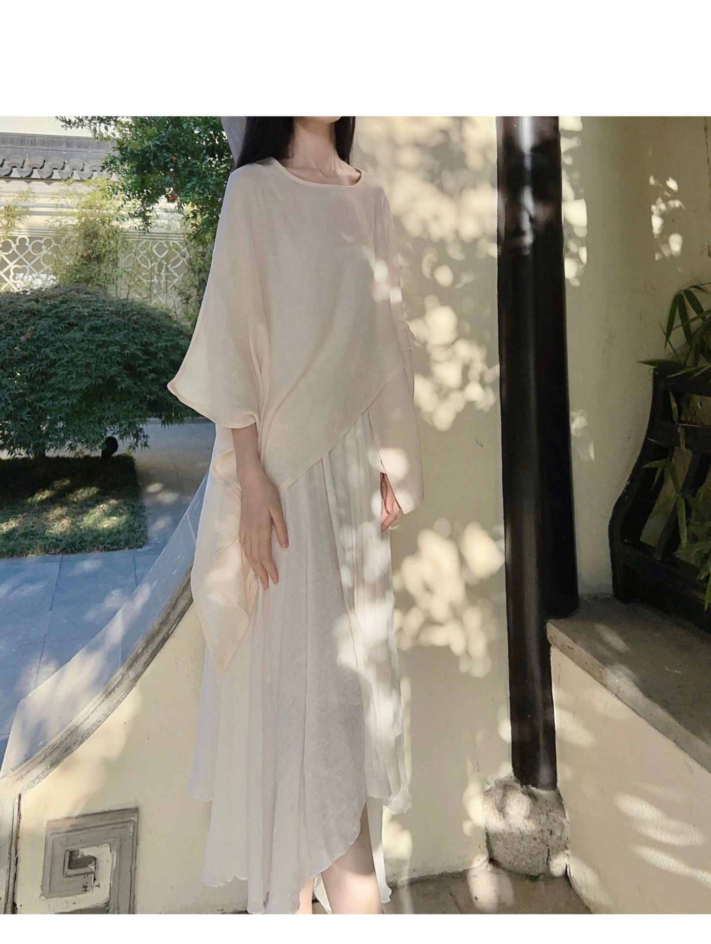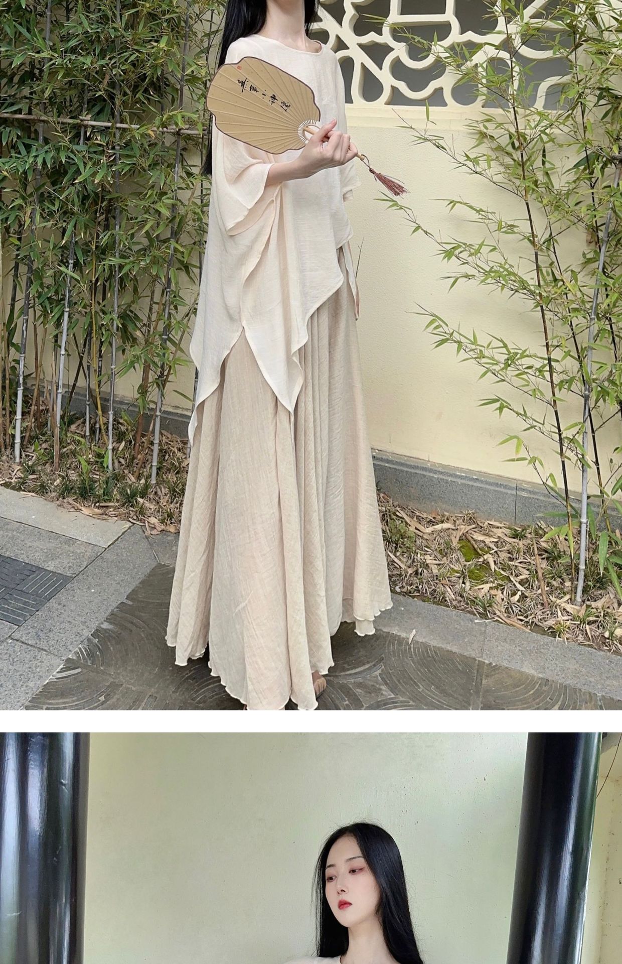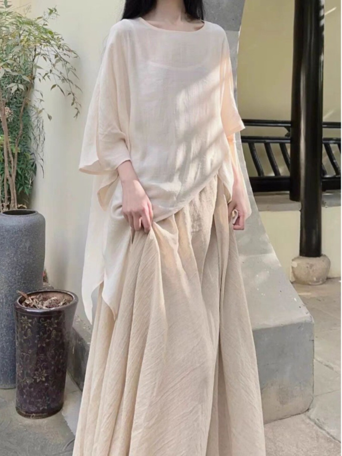 여성을위한 새로운 중국 스타일 선명한 쿨 슈트 스커트 여름 중국 스타일 반팔 탑 불규칙한면과 린넨 스커트 3 피스 세트