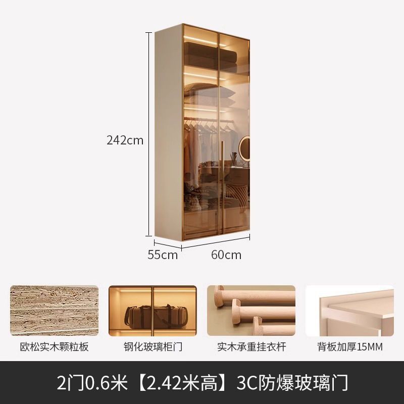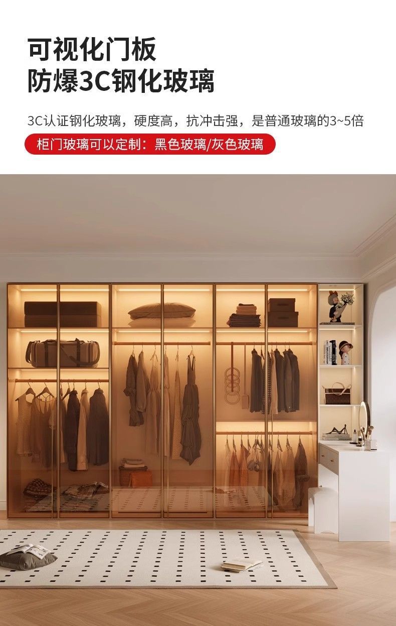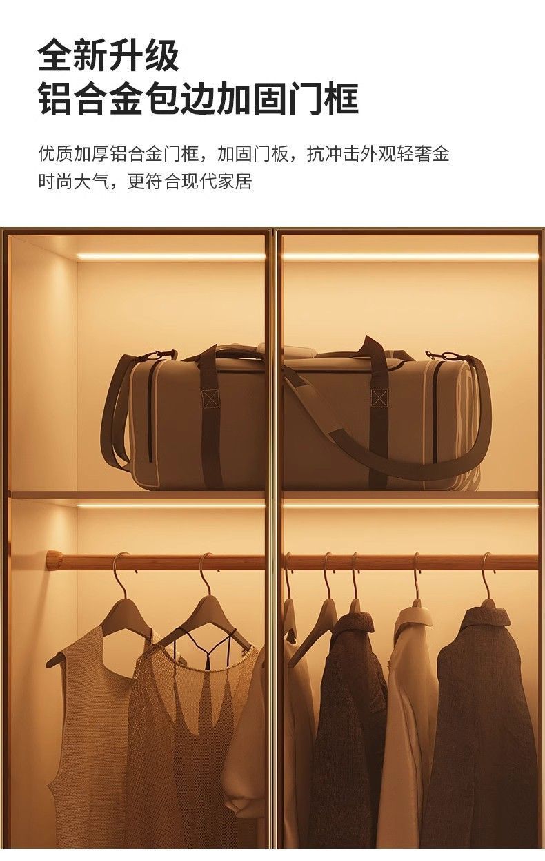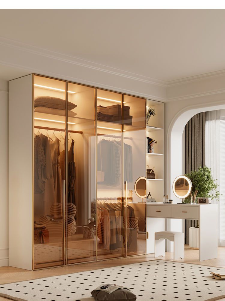 옷장 새로운 2024 단단한 나무 빛 럭셔리 홈 침실 유리 도어 옷장 책상 조립 대형 옷장스토어 가기