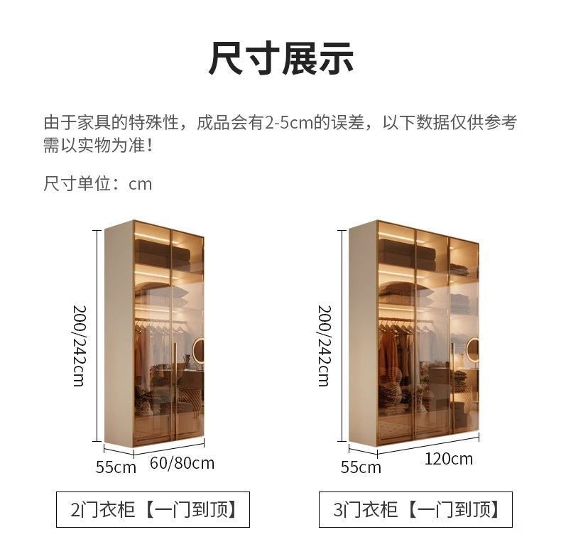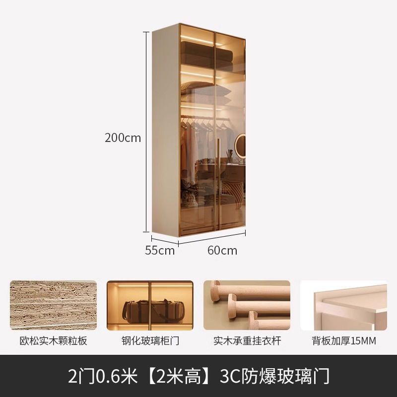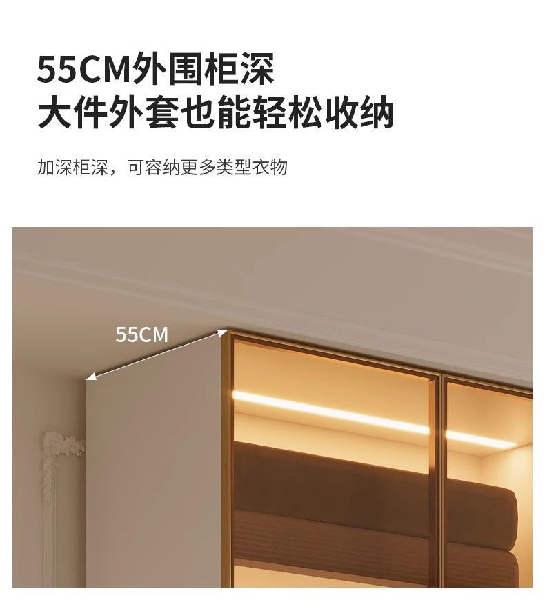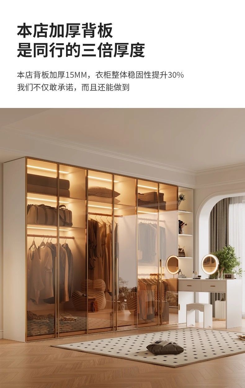 옷장 새로운 2024 단단한 나무 빛 럭셔리 홈 침실 유리 도어 옷장 책상 조립 대형 옷장스토어 가기