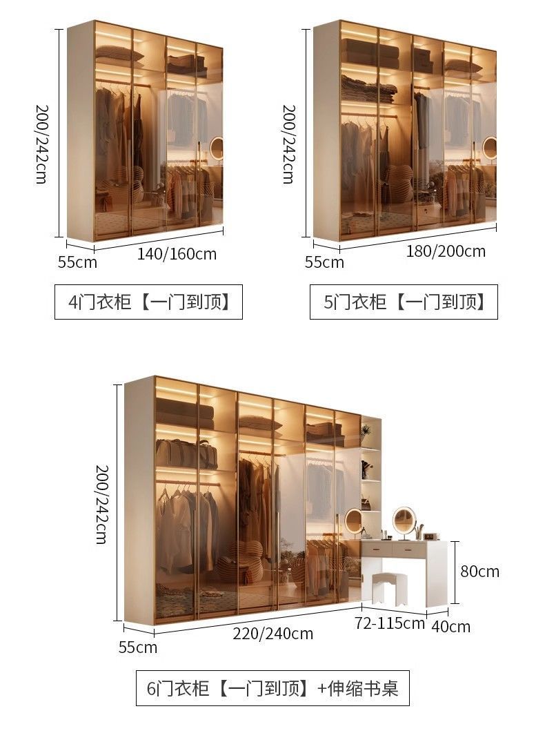 옷장 새로운 2024 단단한 나무 빛 럭셔리 홈 침실 유리 도어 옷장 책상 조립 대형 옷장