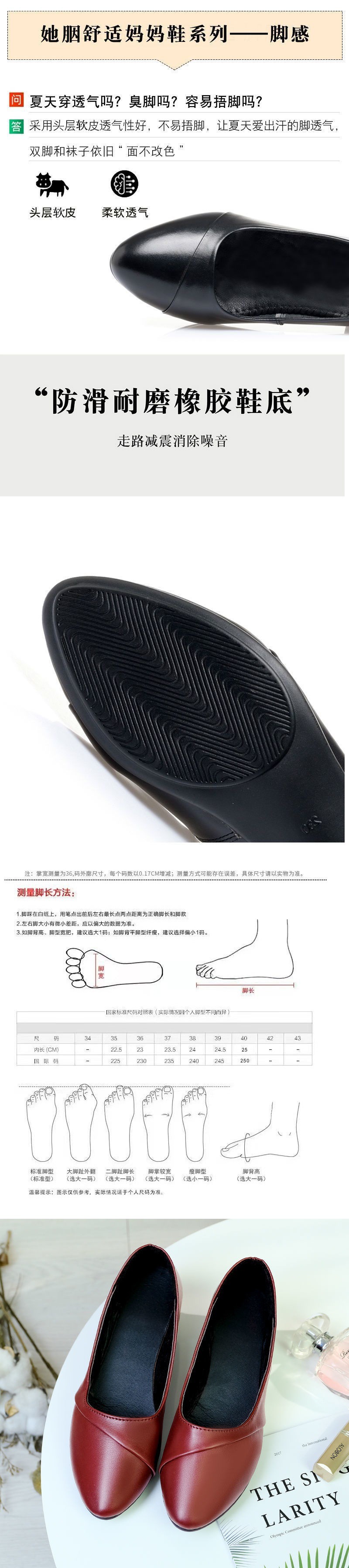 엄마 가죽신, 여성용 둥근코신, 작업화, 새로운 스타일의 부드러운 밑창, 두꺼운 굽, 편안하고 미끄럼 방지, 중년 및 노년층을 위한 헤어스타일