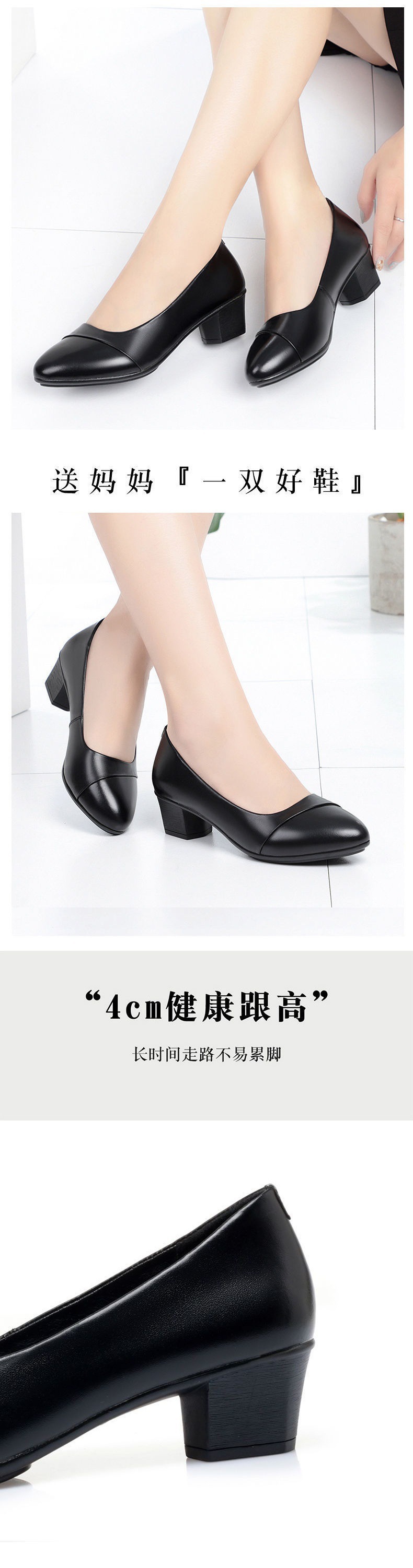엄마 가죽신, 여성용 둥근코신, 작업화, 새로운 스타일의 부드러운 밑창, 두꺼운 굽, 편안하고 미끄럼 방지, 중년 및 노년층을 위한 헤어스타일스토어 가기
