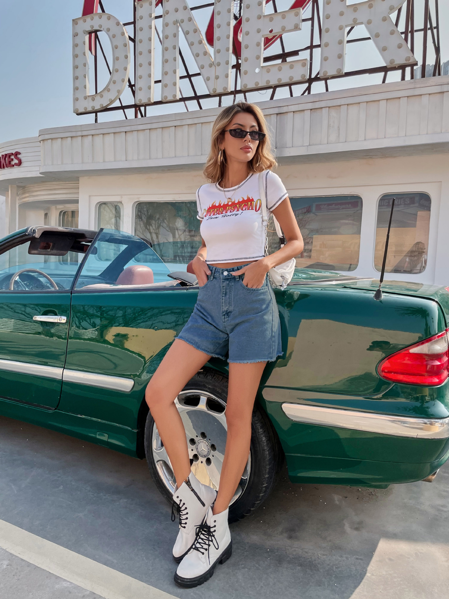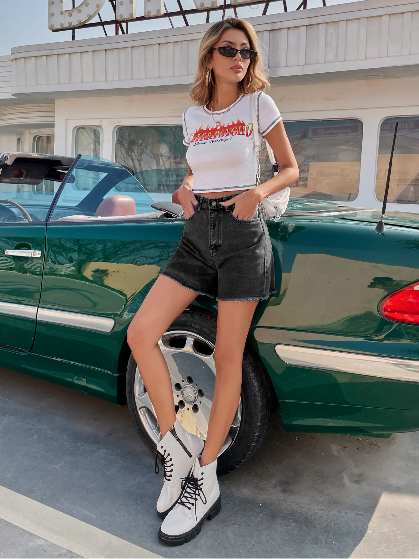30760 # 유럽과 미국의 트렌디한 루즈 캐주얼 하이 웨이스트 루즈 슬리밍 여성 데님 반바지스토어 가기